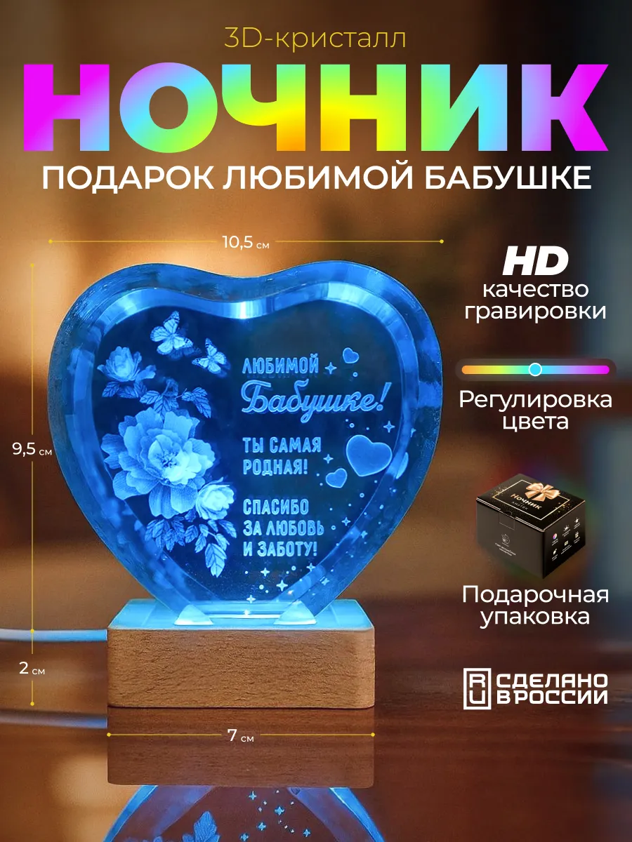 Подарите частичку своего тепла с этим душевным ночником, созданным как нежный знак внимания для любимой бабушки.
