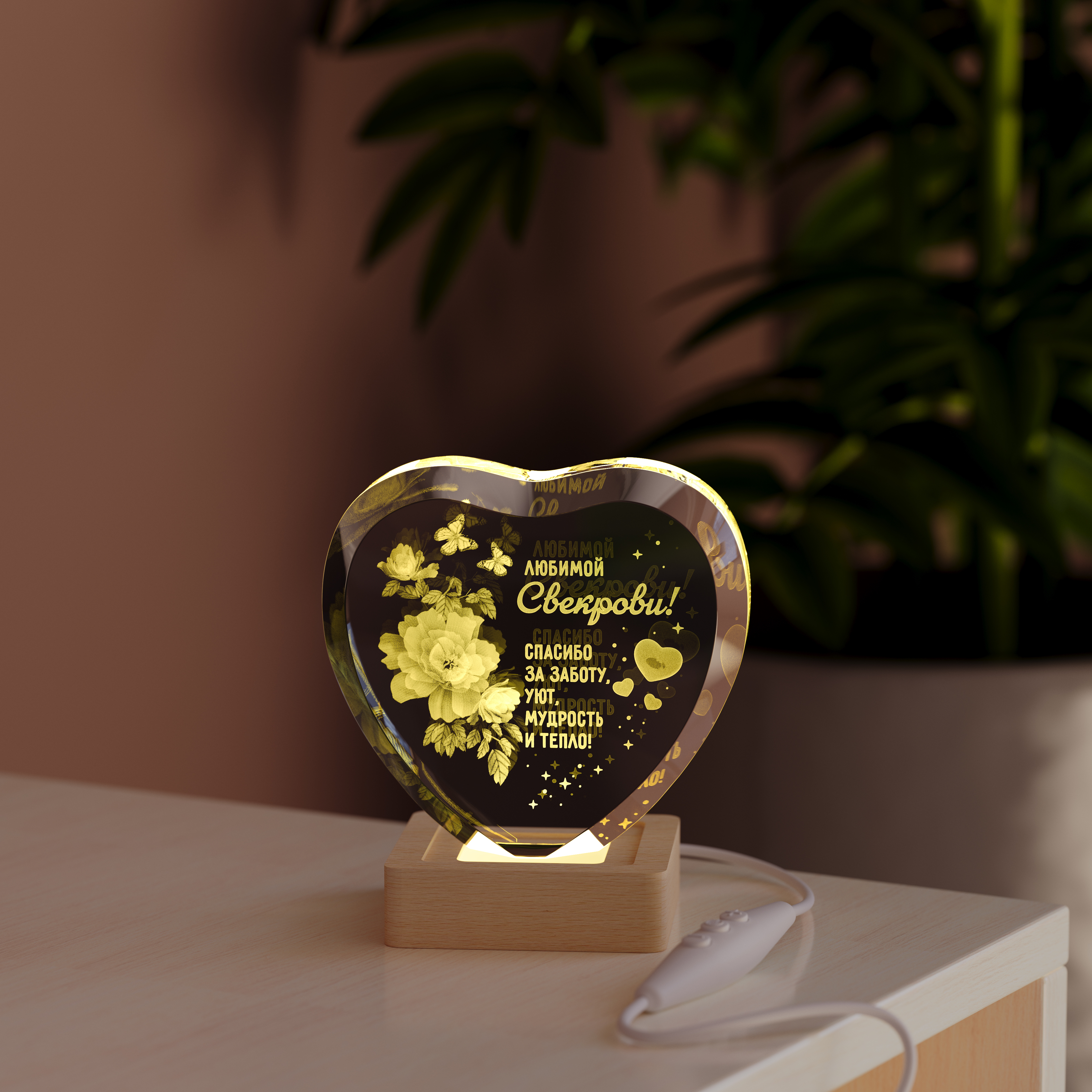 Этот ночник — не просто светильник, а светлое напоминание о вашей любви и заботе, воплощенное в форме сердца с изящными цветами.