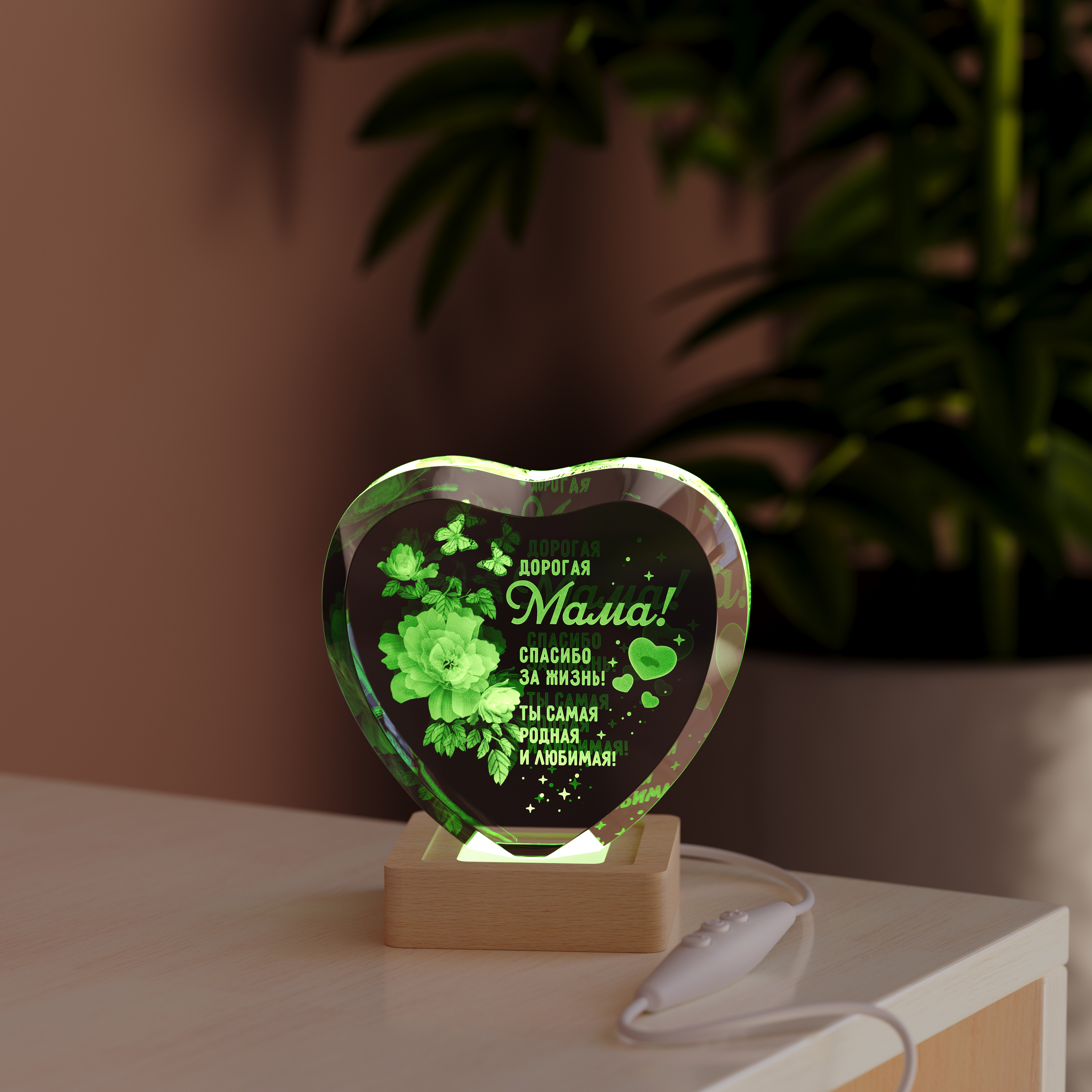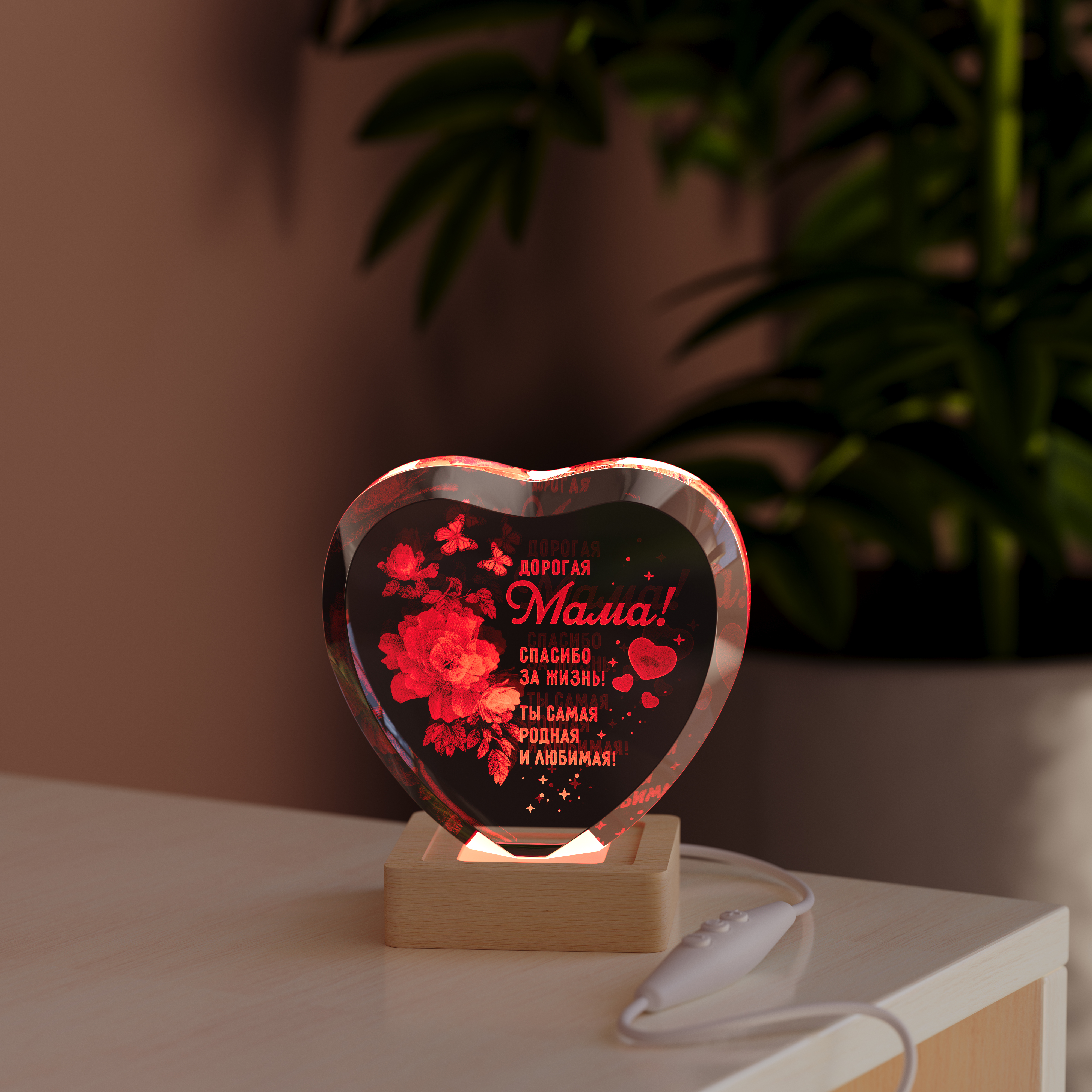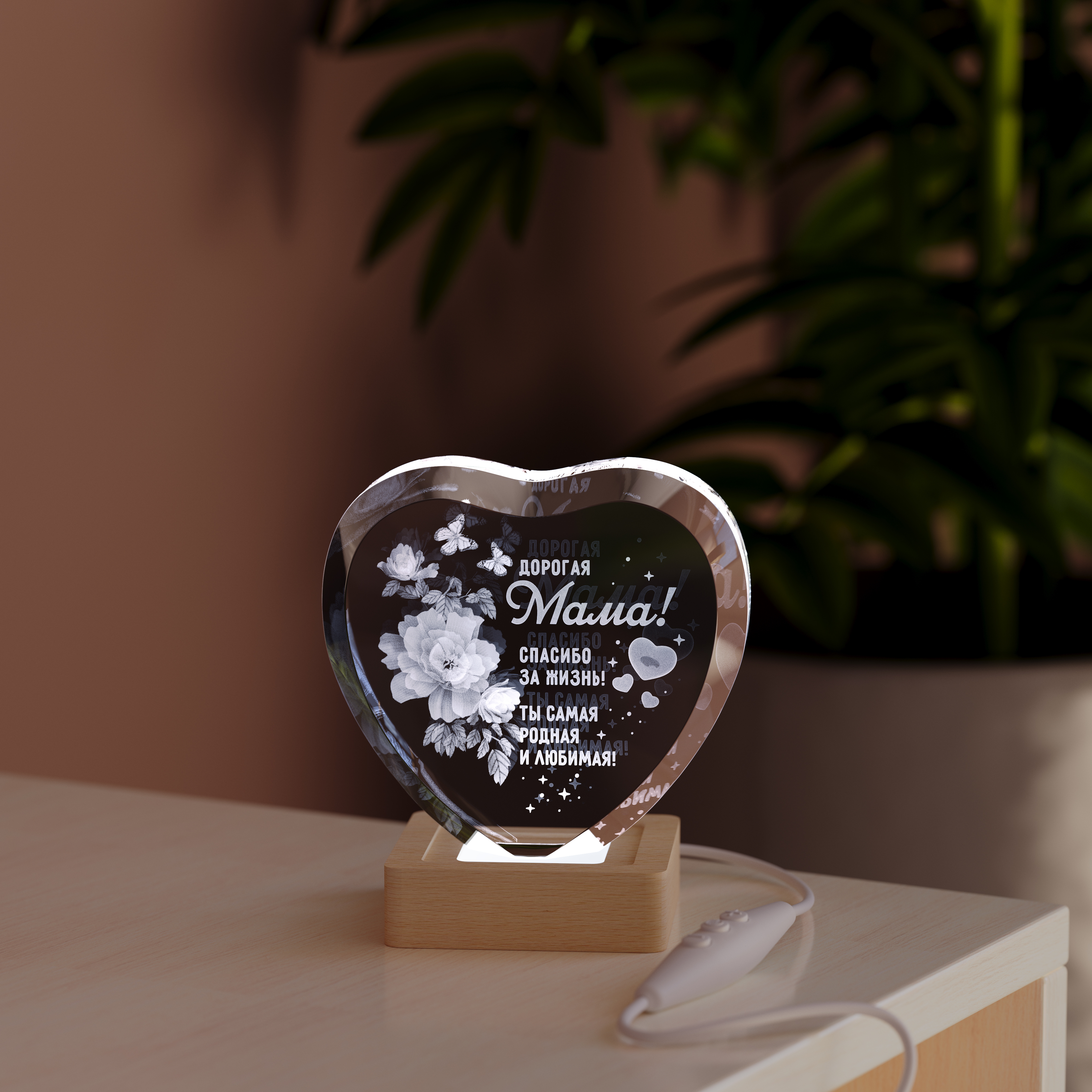 Есть подарки, которые становятся настоящей драгоценностью, хранящей тепло самых искренних чувств. Ночник Сердце с цветами маме — это именно такой подарок. Выполненный в форме кристального сердца, он словно заключает в своих сияющих гранях вечный букет и самое главные слова для мамы. Это не просто источник света, а символ вашей любви, которому придали изящную и осязаемую форму.