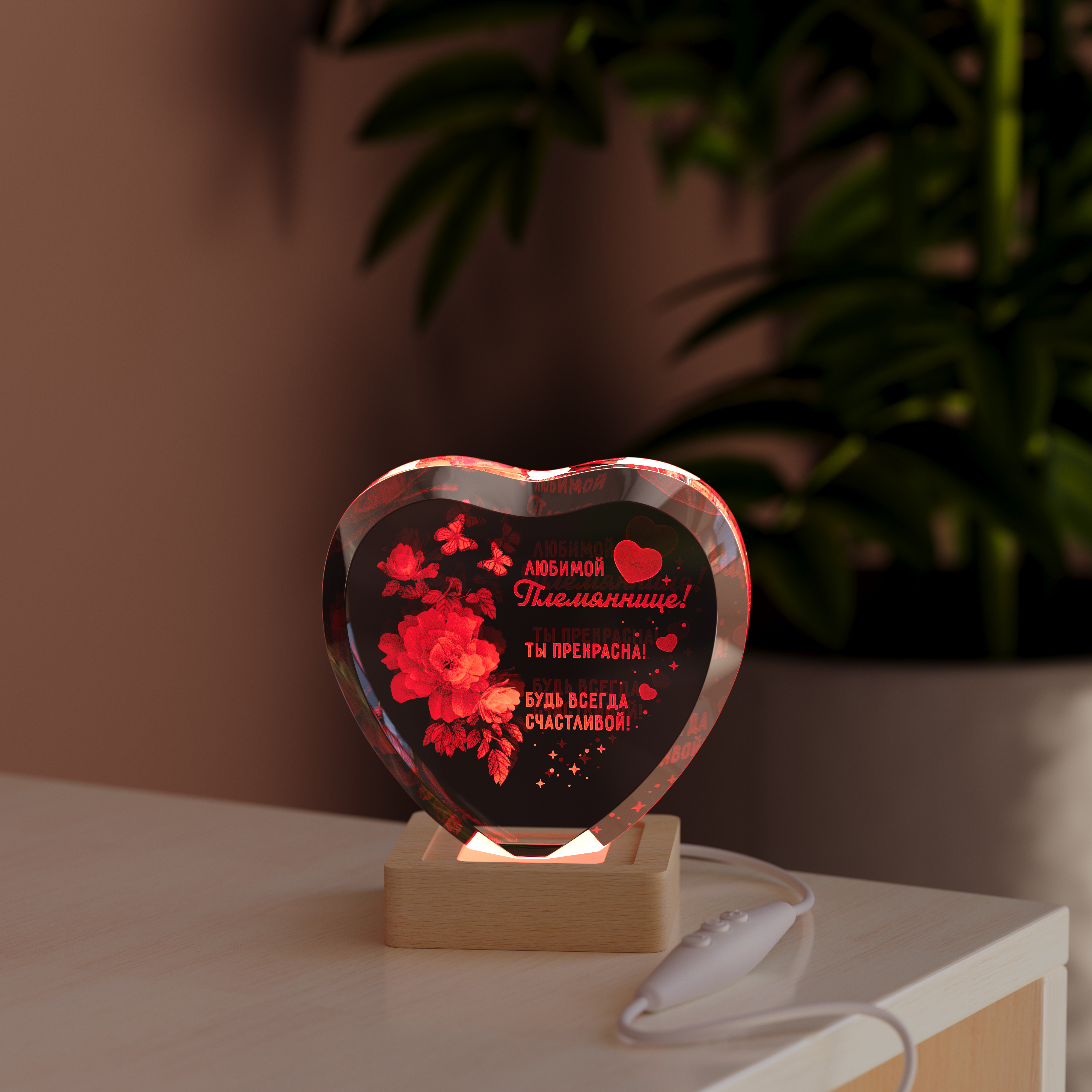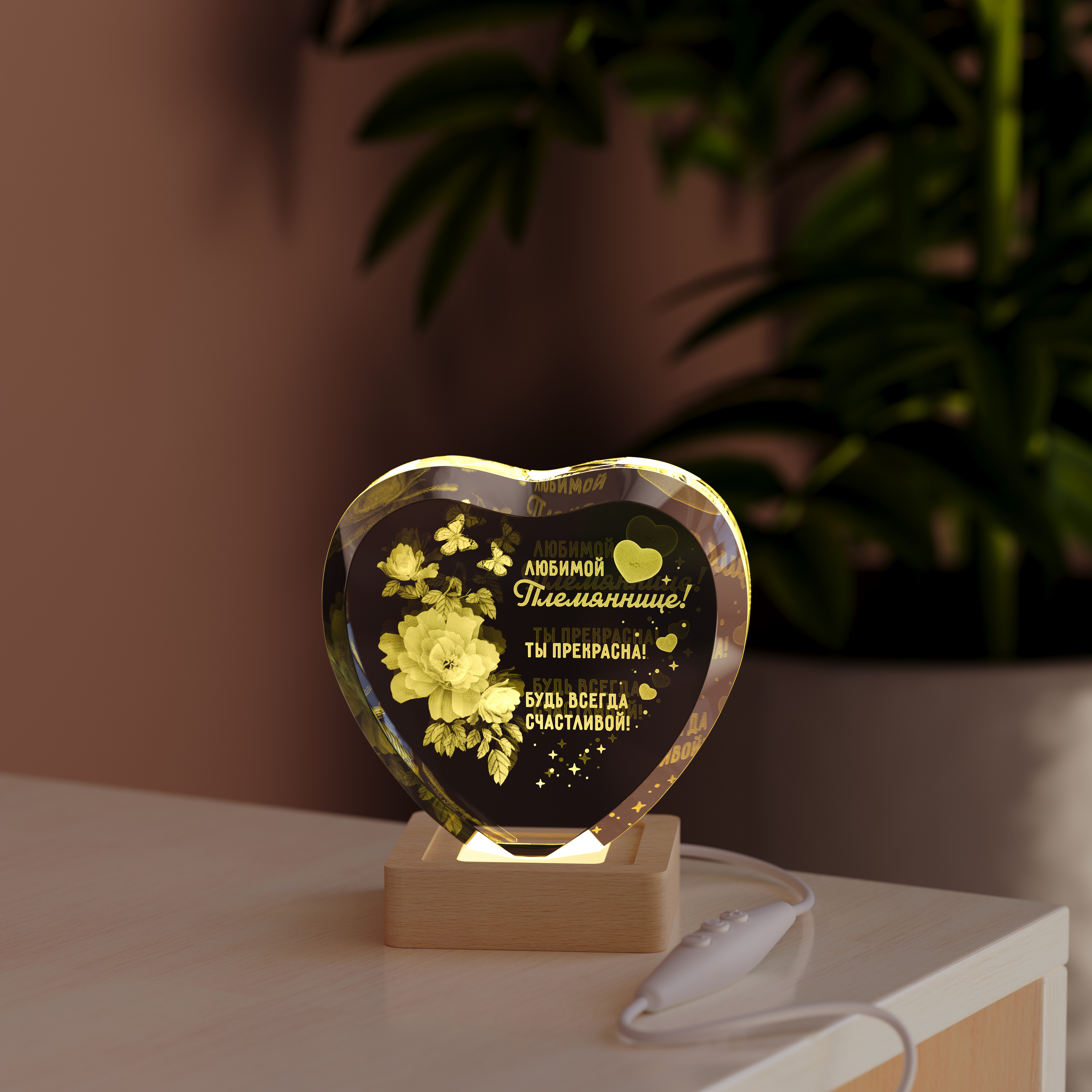 Подарки для любимой племянницы должны быть особенными, наполненными волшебством и нежностью. Ночник Сердце с цветами племяннице — это не просто светильник, а настоящий талисман, созданный, чтобы дарить радость. Выполненный в форме изящного сердца, он хранит внутри тонкую гравировку с цветами и теплым посланием для нее. Это сияющее напоминание о вашей особой связи.