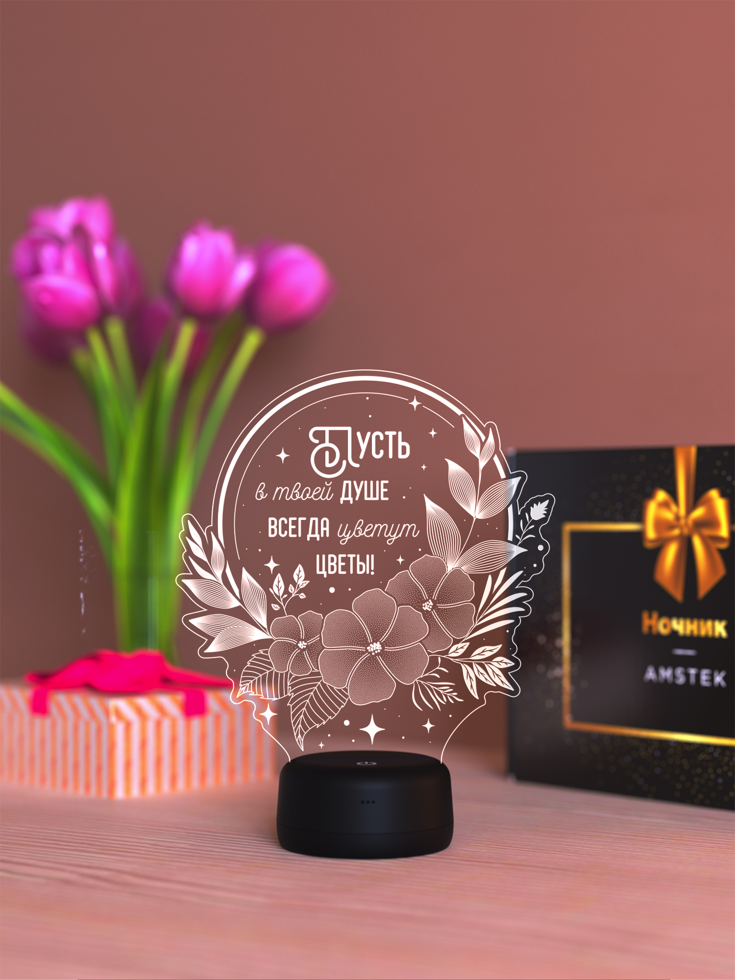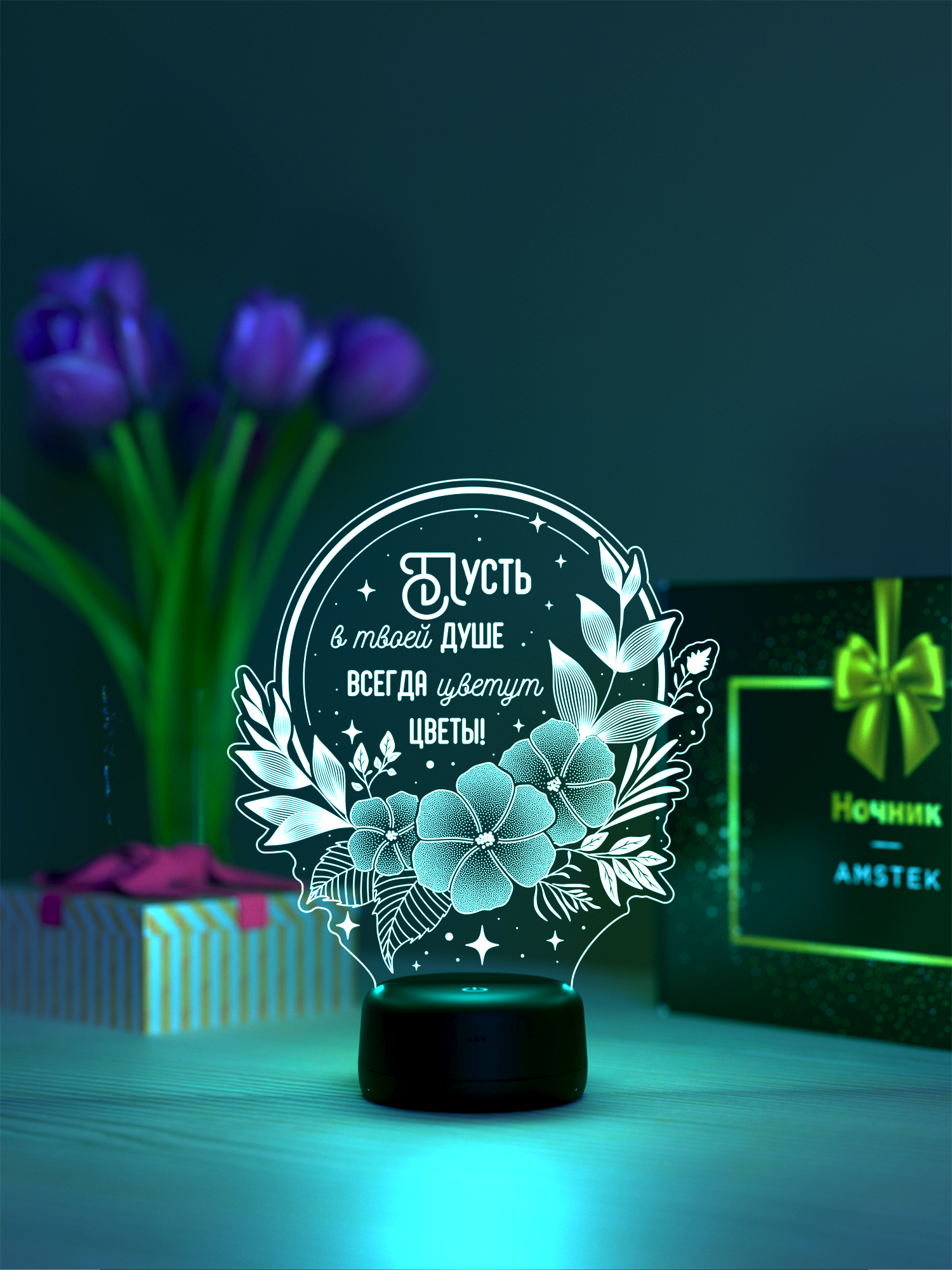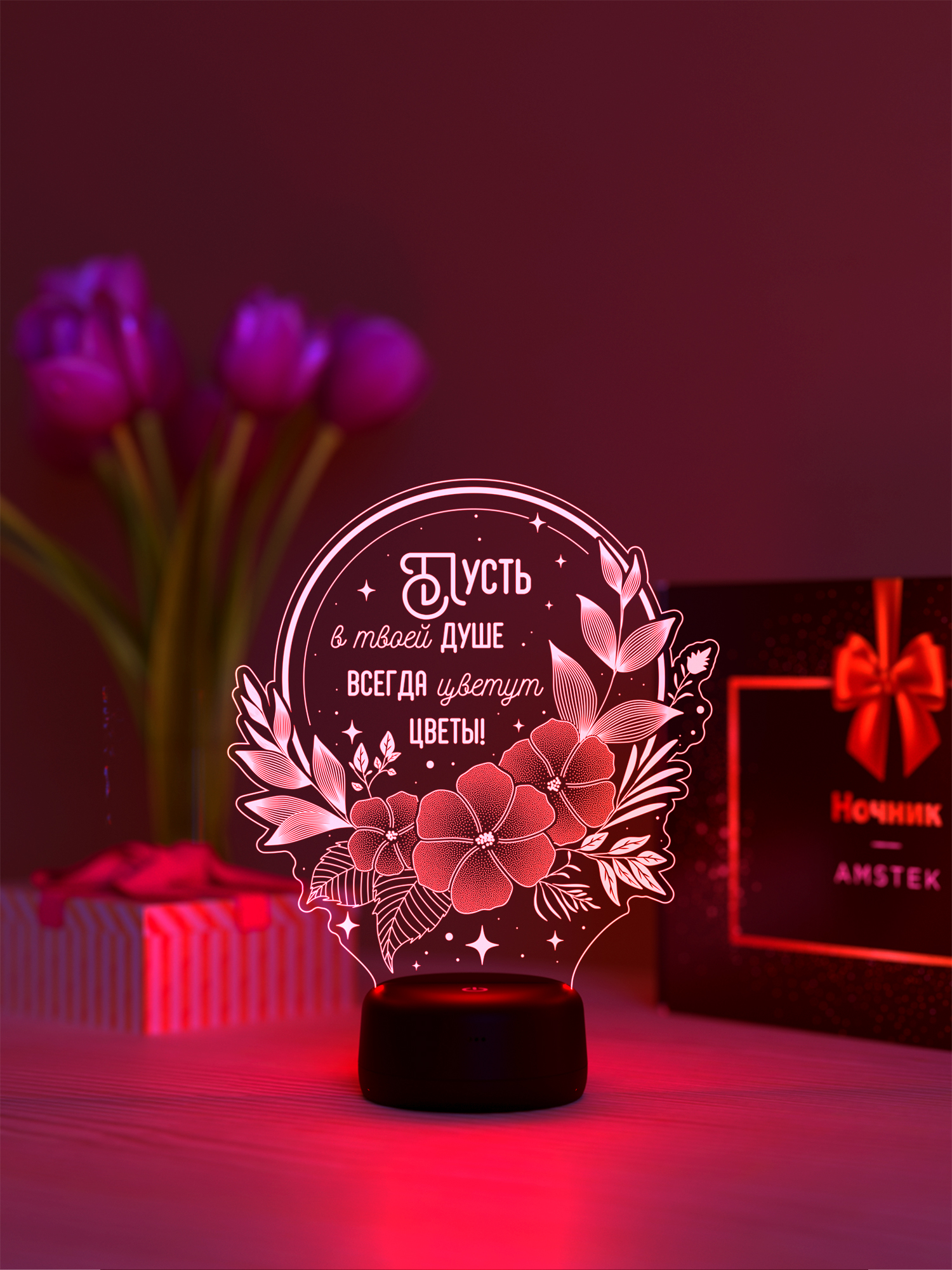 Ночник «Круговая рамка с цветами» - это тёплый свет и трогательные слова, которые каждый вечер будут напоминать о самом важном. Надпись «Пусть в твоей душе всегда цветут цветы» придаёт изделию особый смысл, превращая ночник в символ заботы, поддержки и искренних чувств. Изящная композиция с цветочным оформлением гармонично дополняет интерьер, а мягкое свечение создаёт спокойную, уютную атмосферу, в которой хочется отдыхать и наслаждаться моментом.