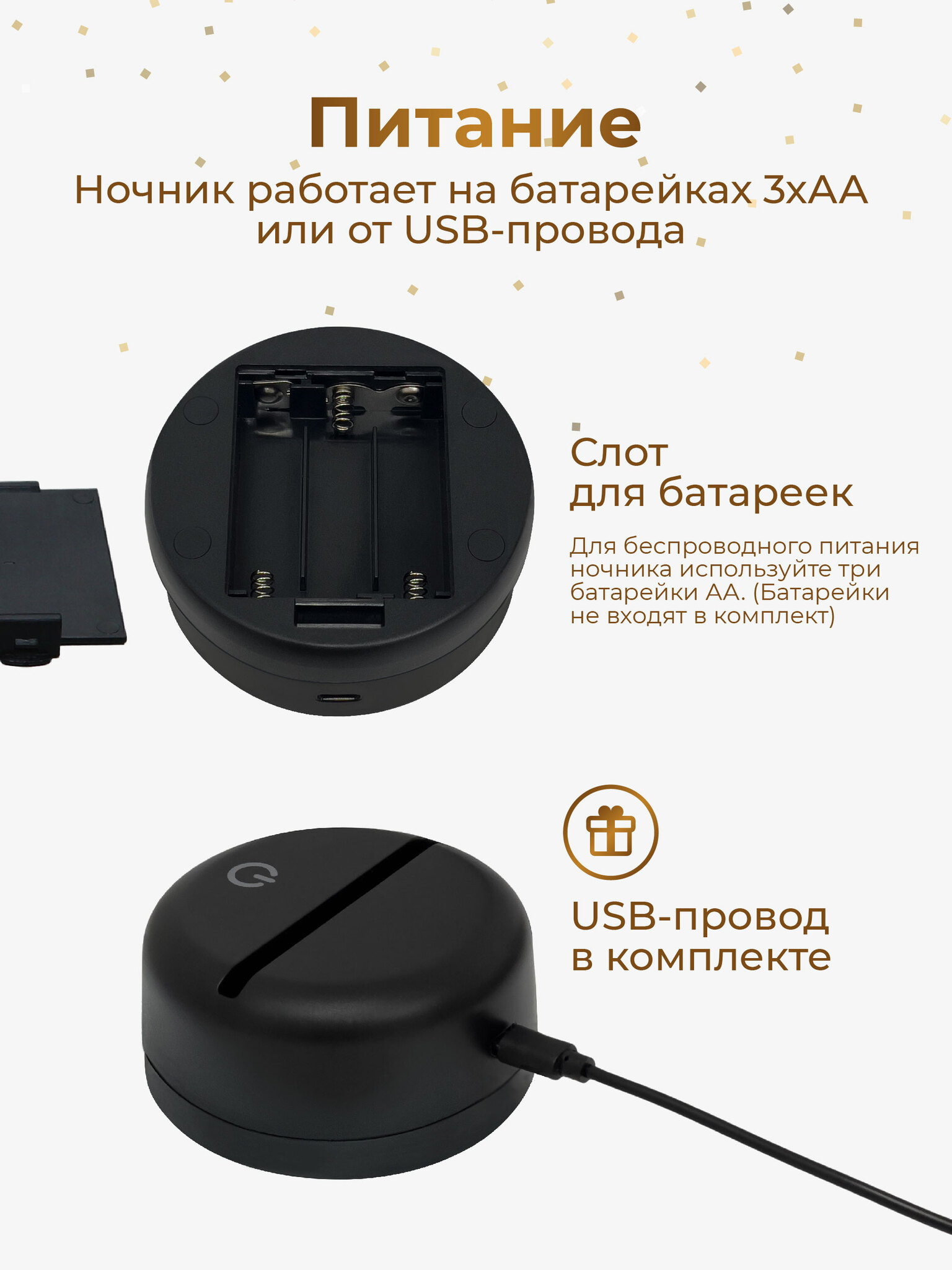 Стильный дизайн ночника органично впишется в любой интерьер, добавив ему уюта и изысканности. Многоцветное свечение с 16 оттенками позволяет легко менять настроение пространства — от тёплого сияния до яркого праздничного света. Яркость можно регулировать, а цвета переключать с помощью удобного пульта дистанционного управления. Высокое качество рисунка и надёжные материалы обеспечивают долговечность и безупречный внешний вид, а презентабельная упаковка делает ночник готовым к вручению без дополнительного оформления.