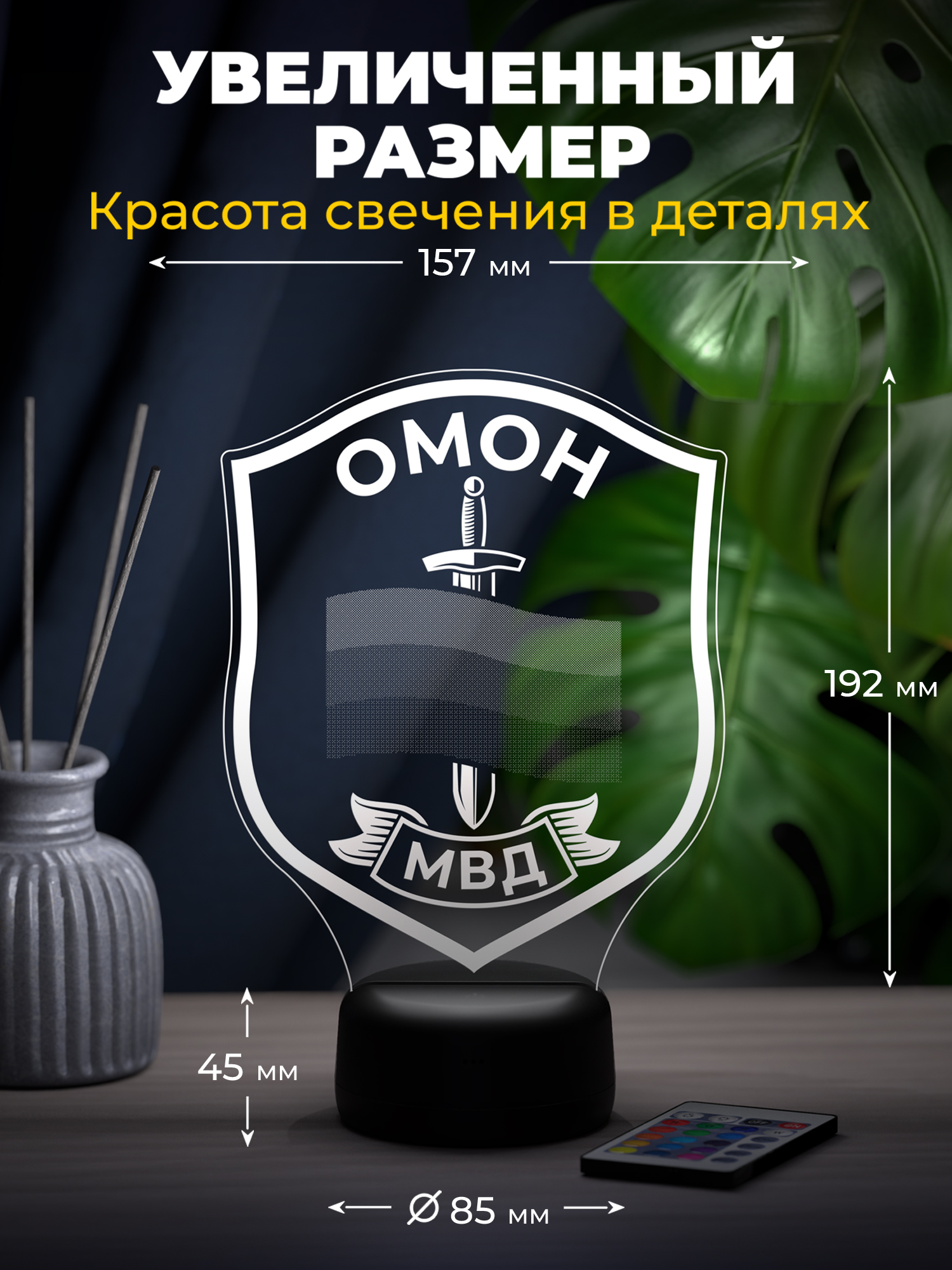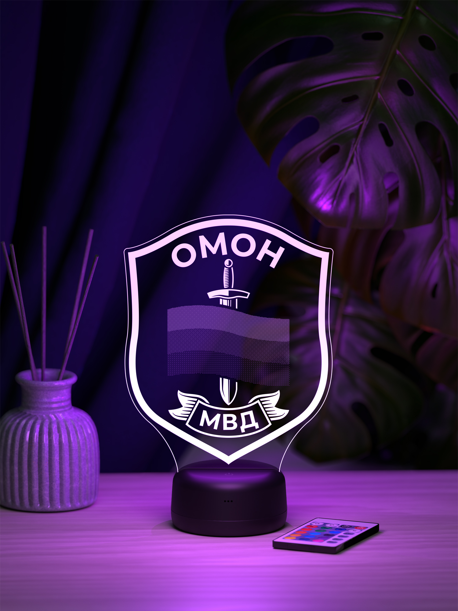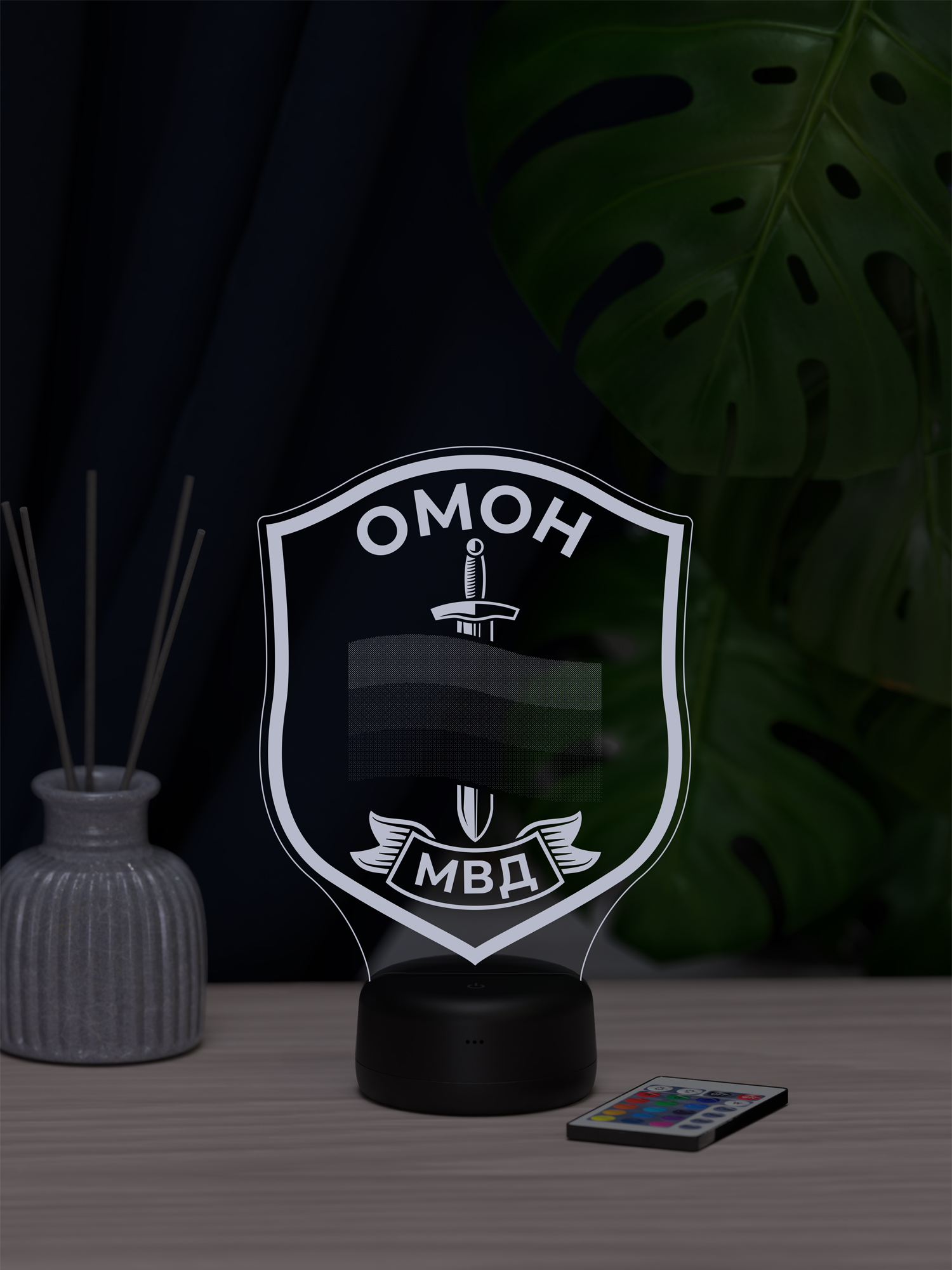 Ночник предлагает 16 цветов свечения, удобную регулировку яркости и переключение режимов с помощью пульта дистанционного управления, позволяя легко менять настроение освещения под обстановку. Презентабельная упаковка сразу подчёркивает, что перед вами готовый подарок. Такой подарок подойдёт сотруднику ОМОН, ветерану подразделения или человеку, связанному с силовыми структурами, и будет уместен на профессиональный праздник, день рождения, юбилей или памятную дату, добавляя в интерьер символ мужества, ответственности и служебной чести.