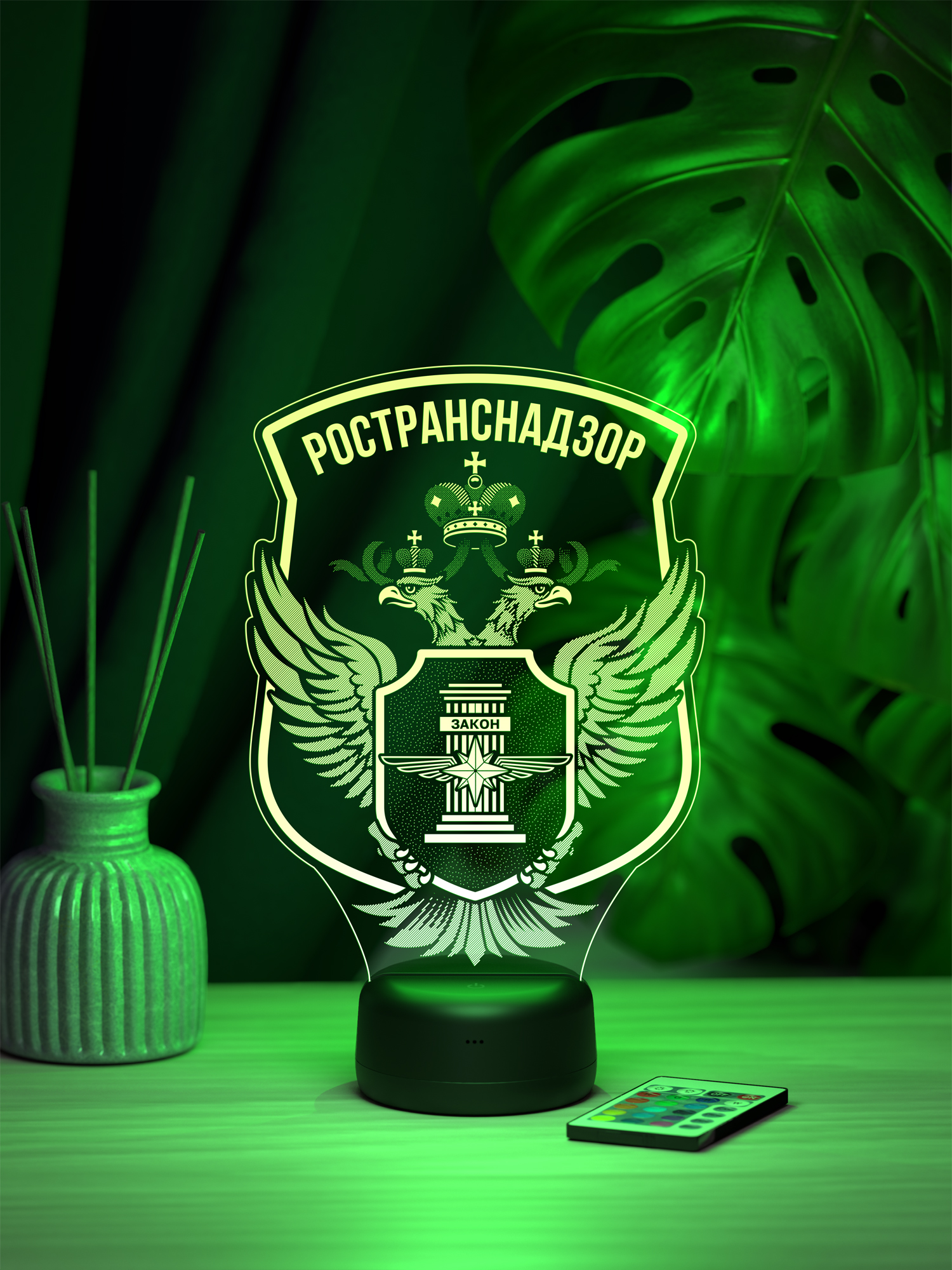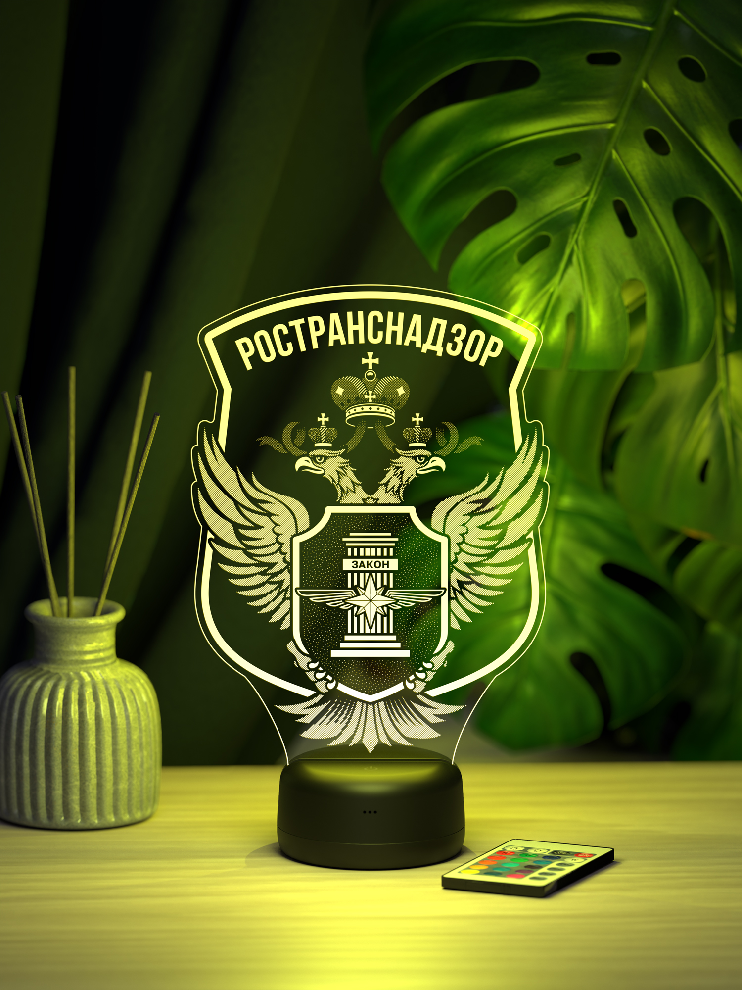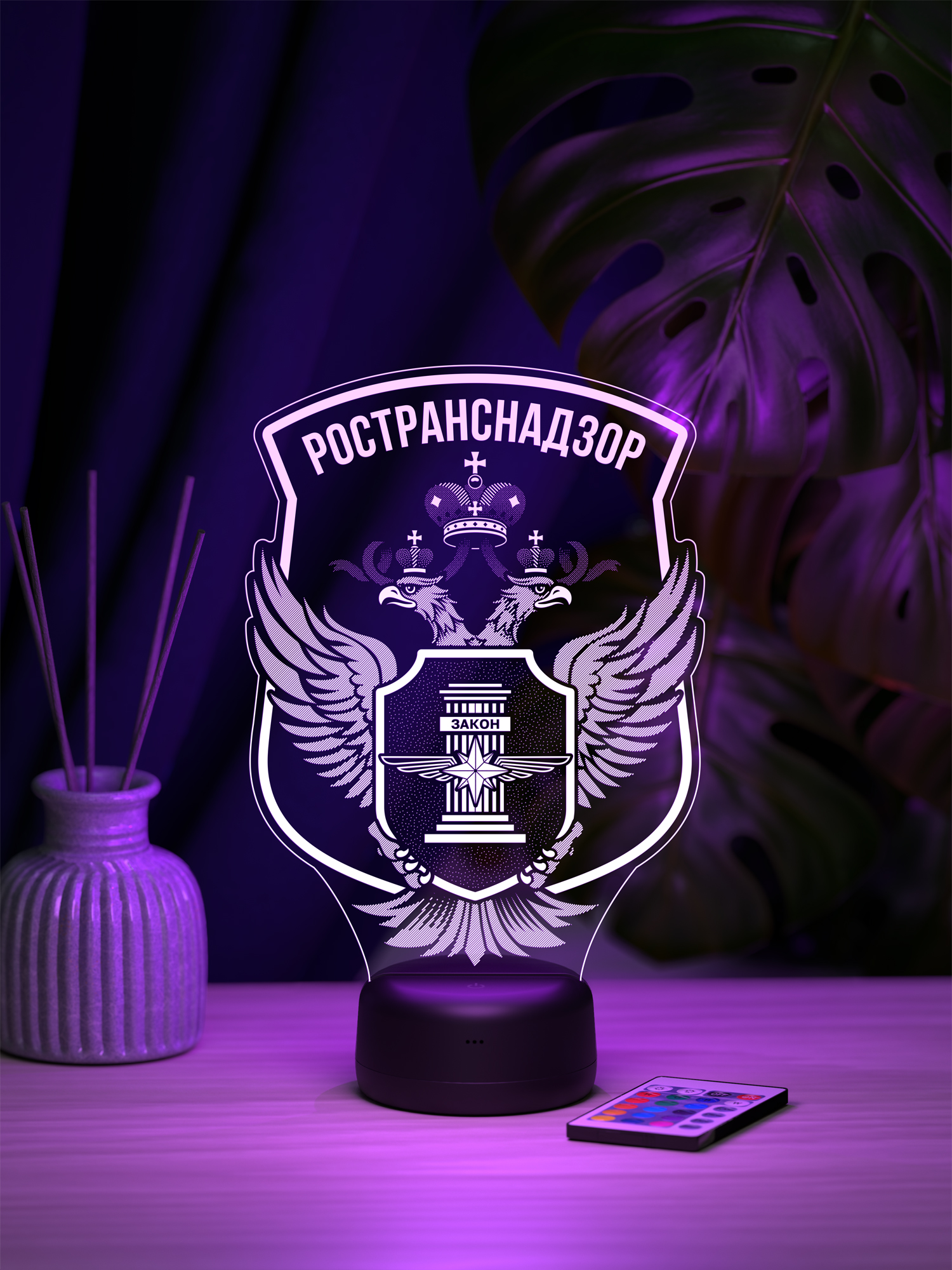 Ночник «Ространснадзор» подчёркивает значимость службы, ответственность и порядок в транспортной сфере, создавая сдержанную и уверенную атмосферу. Тематическое изображение с официальной символикой выполнено с высокой чёткостью, а мягкое свечение аккуратно выделяет линии гравировки и гармонично дополняет интерьер кабинета, рабочего пространства или дома. Качественные материалы и аккуратное исполнение делают ночник статусным элементом декора.