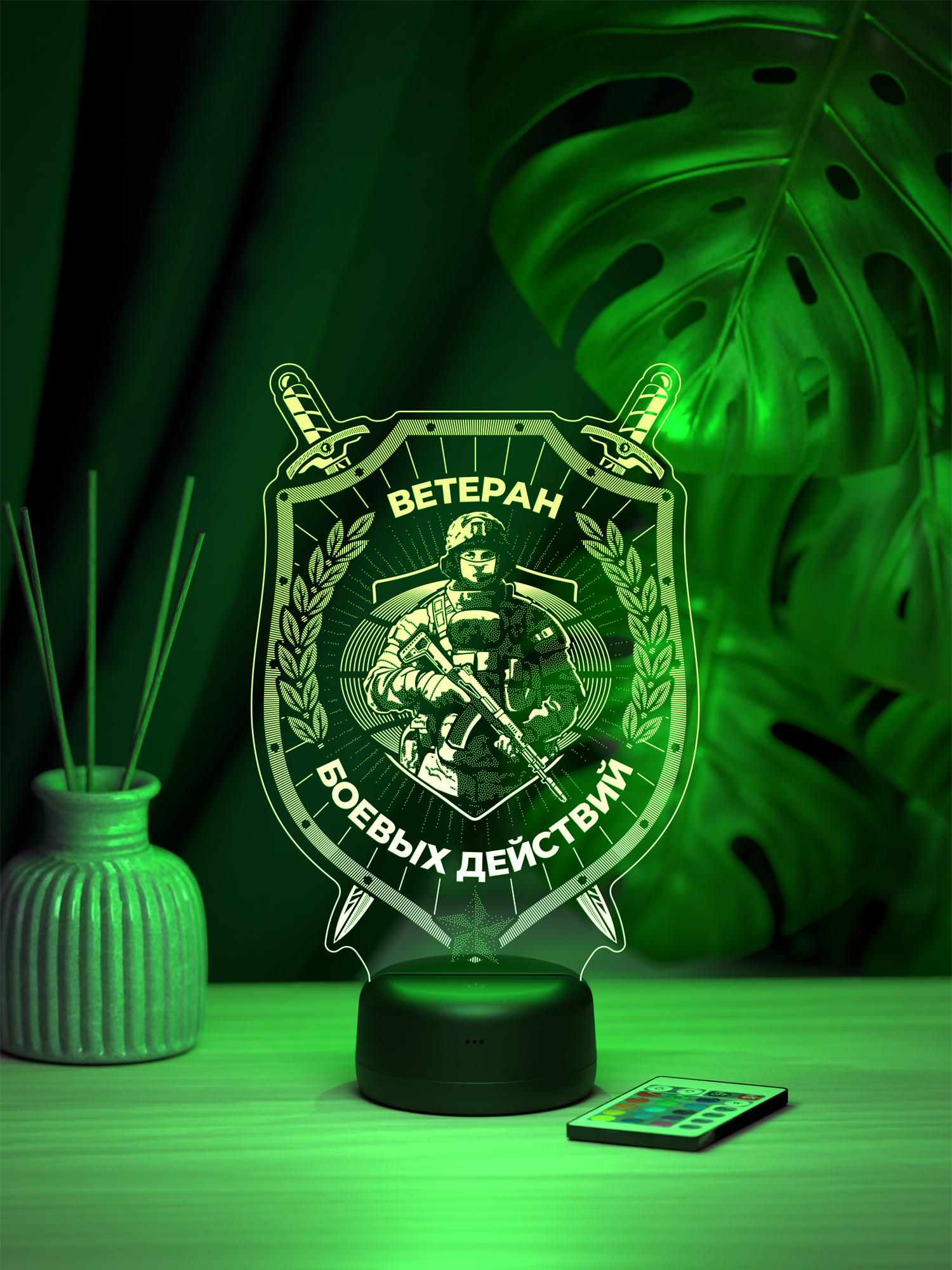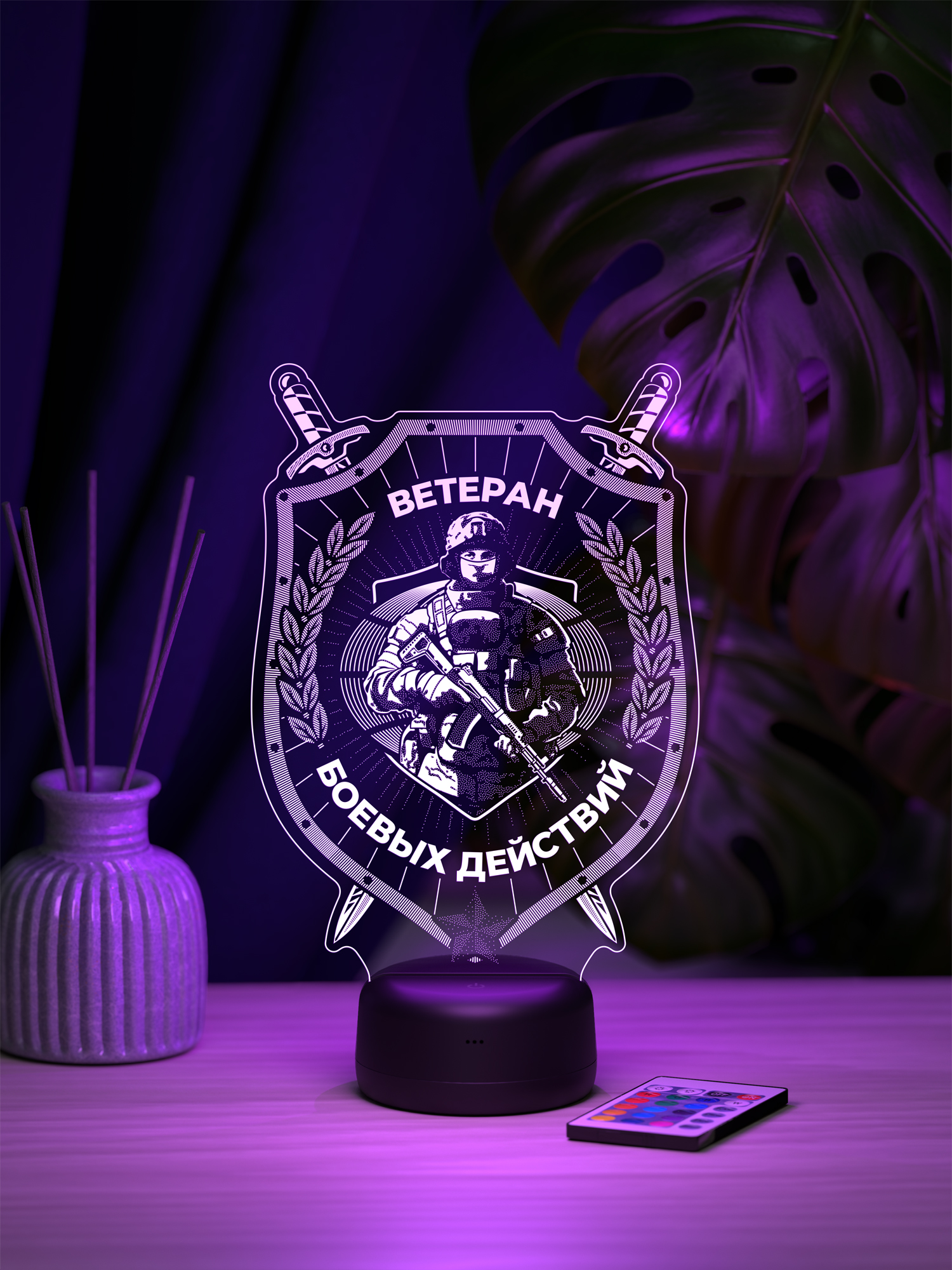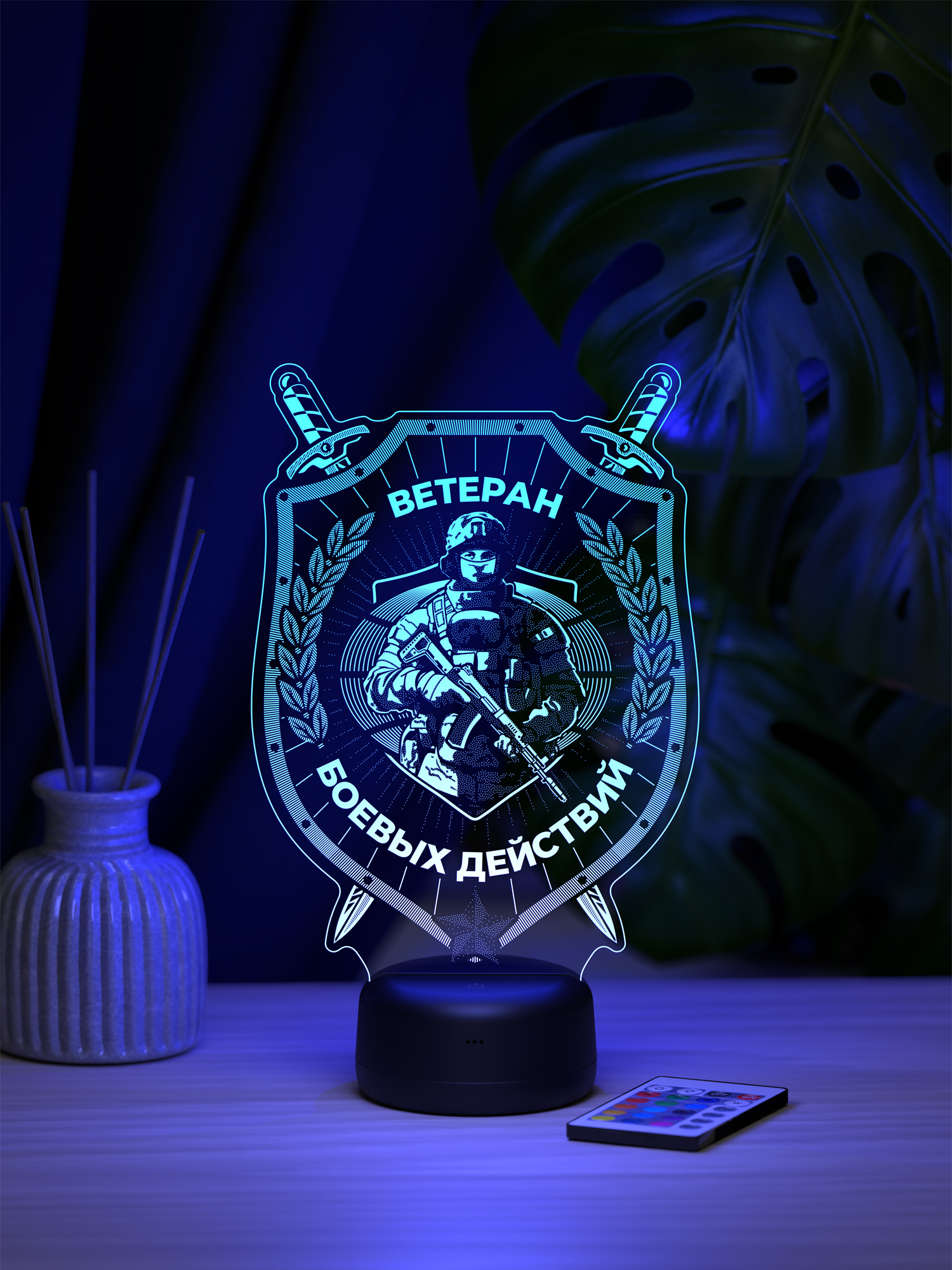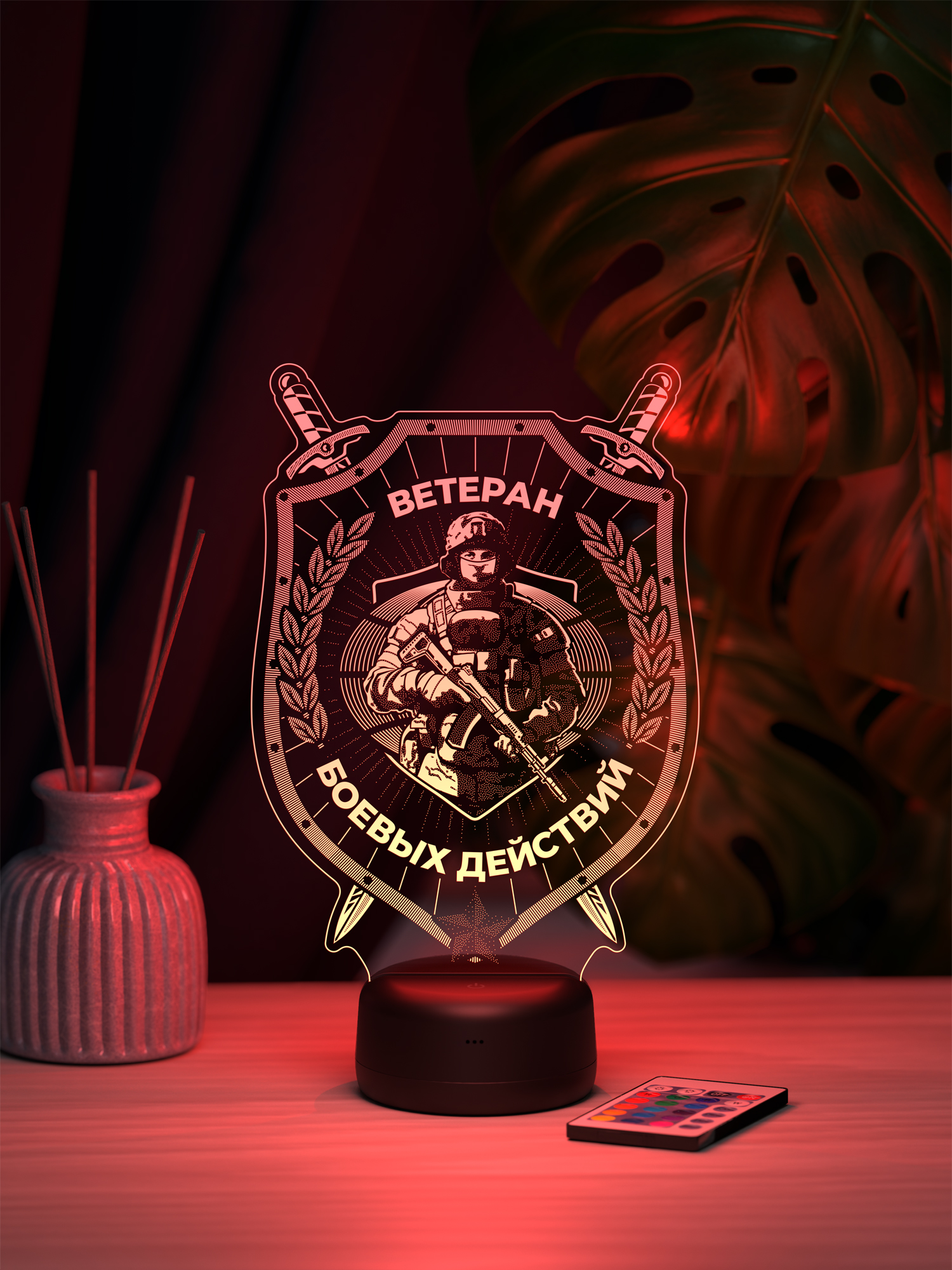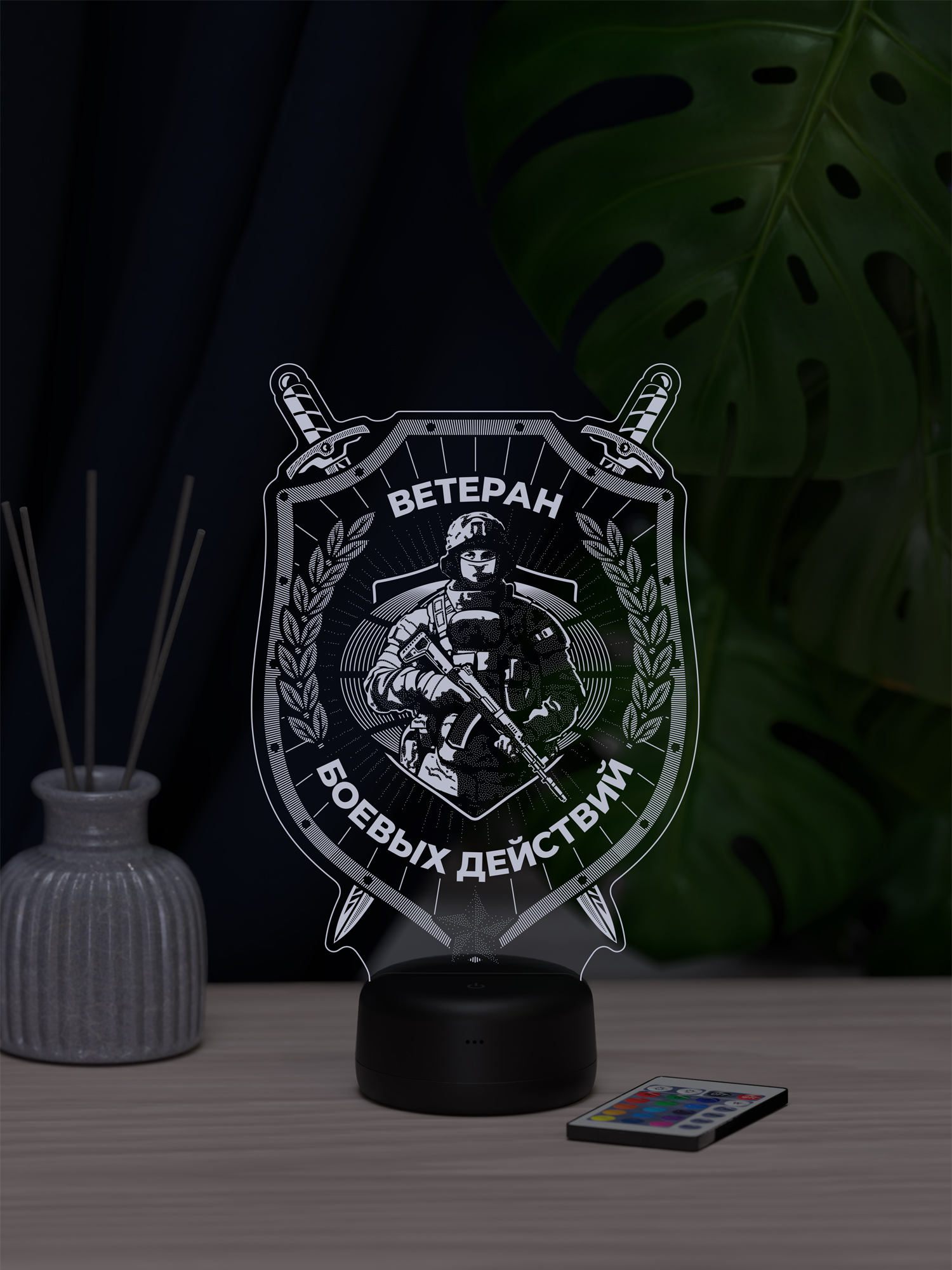 Ночник «СВО. Ветеран боевых действий» - это атмосферный элемент интерьера, который подчеркивает уважение к службе, мужеству и силе духа. Тематический рисунок с четкими линиями и высокой детализацией создает выразительное свечение и наполняет пространство особым смыслом и спокойной атмосферой. Такой ночник будет гармонично смотреться в комнате, кабинете или на рабочем столе, добавляя интерьеру характер и символичность.