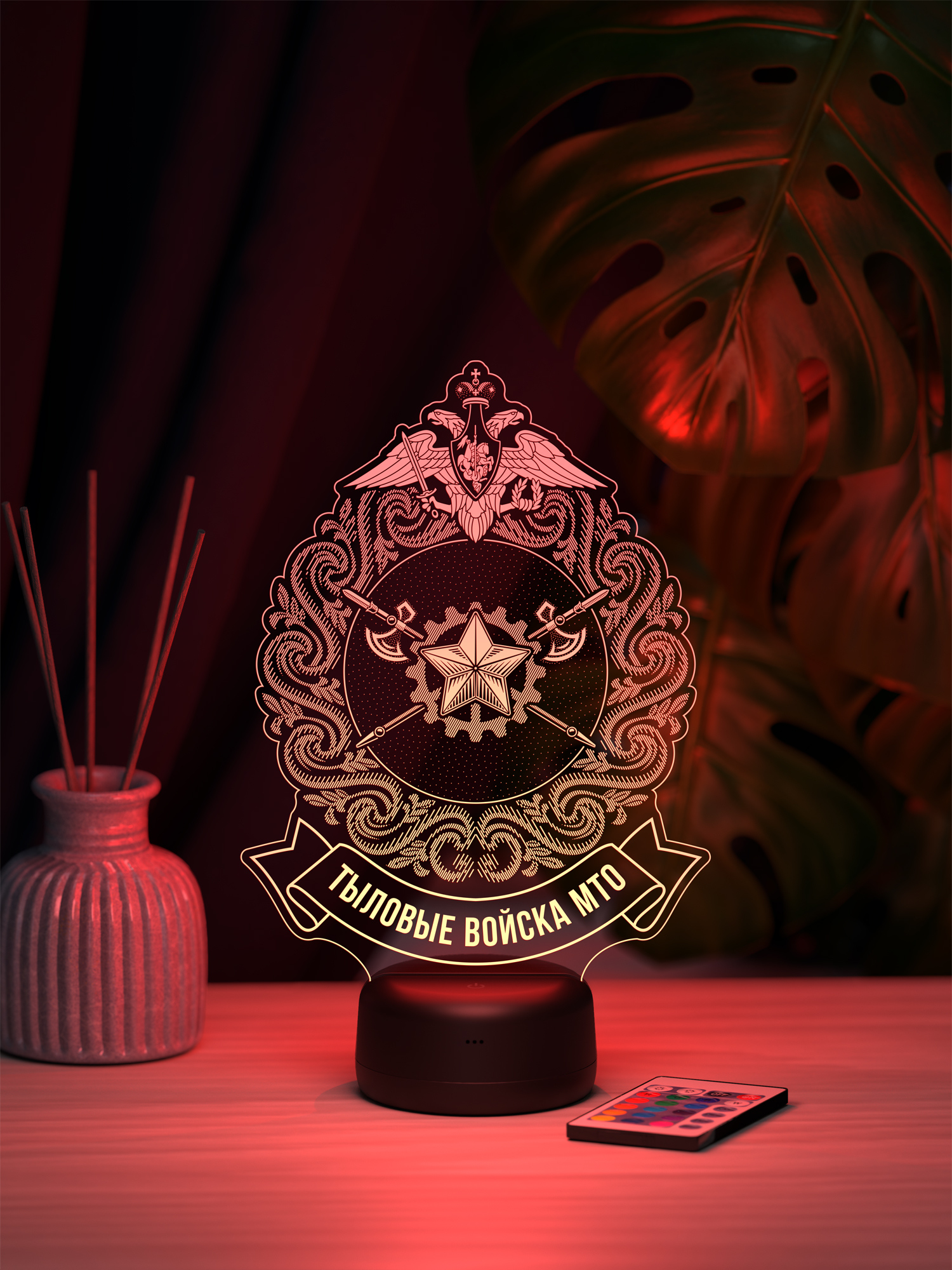 Ночник «Тыловые войска МТО» — это знак уважения к тем, кто остаётся в тени, но обеспечивает надёжный фундамент любой операции. Эмблема тыловых войск в мягком свете выглядит выразительно и достойно, подчёркивая значимость службы и вклад в общее дело. Такой ночник гармонично вписывается в интерьер кабинета или дома, создавая атмосферу уверенности, порядка и внутренней силы.