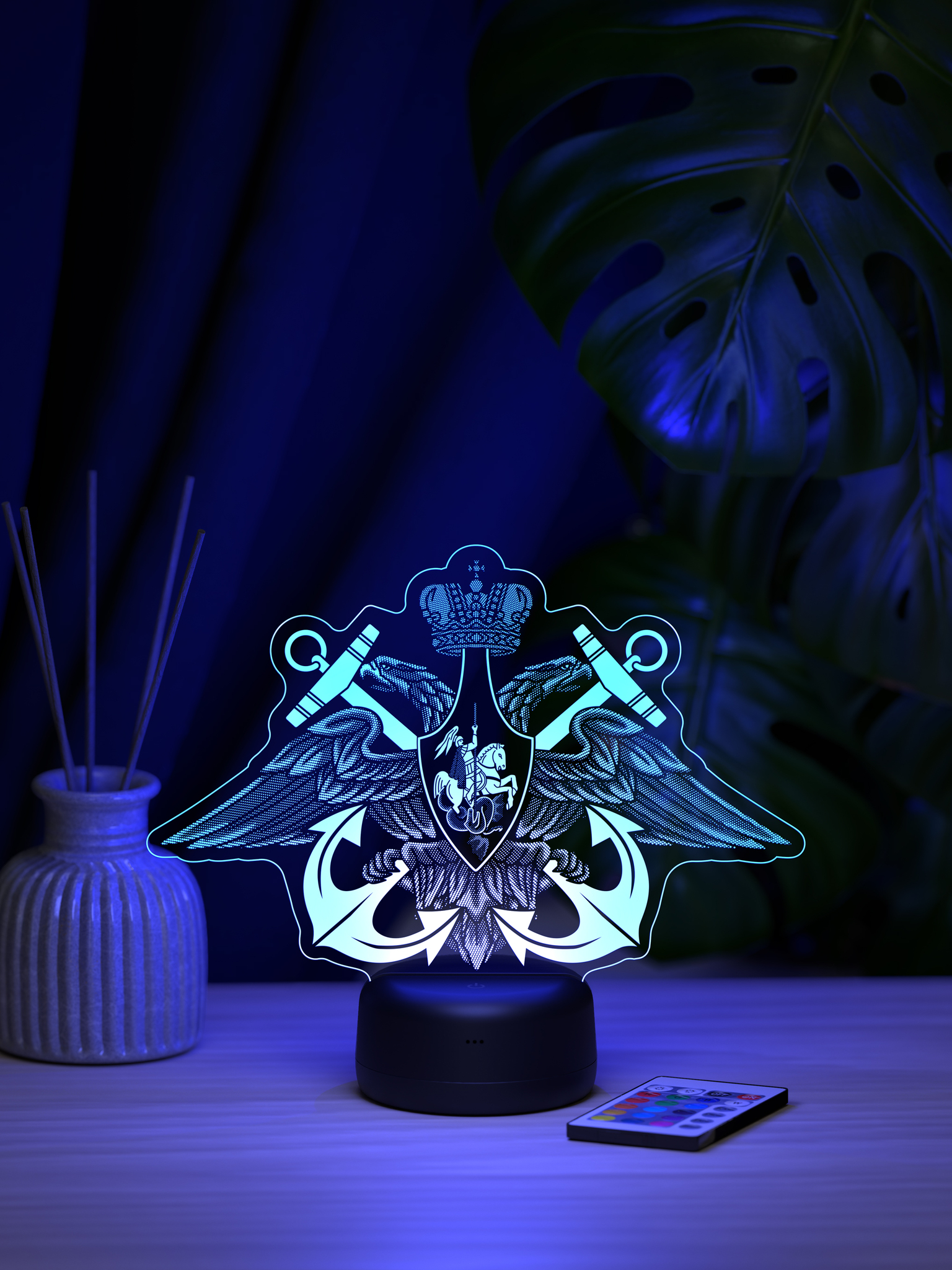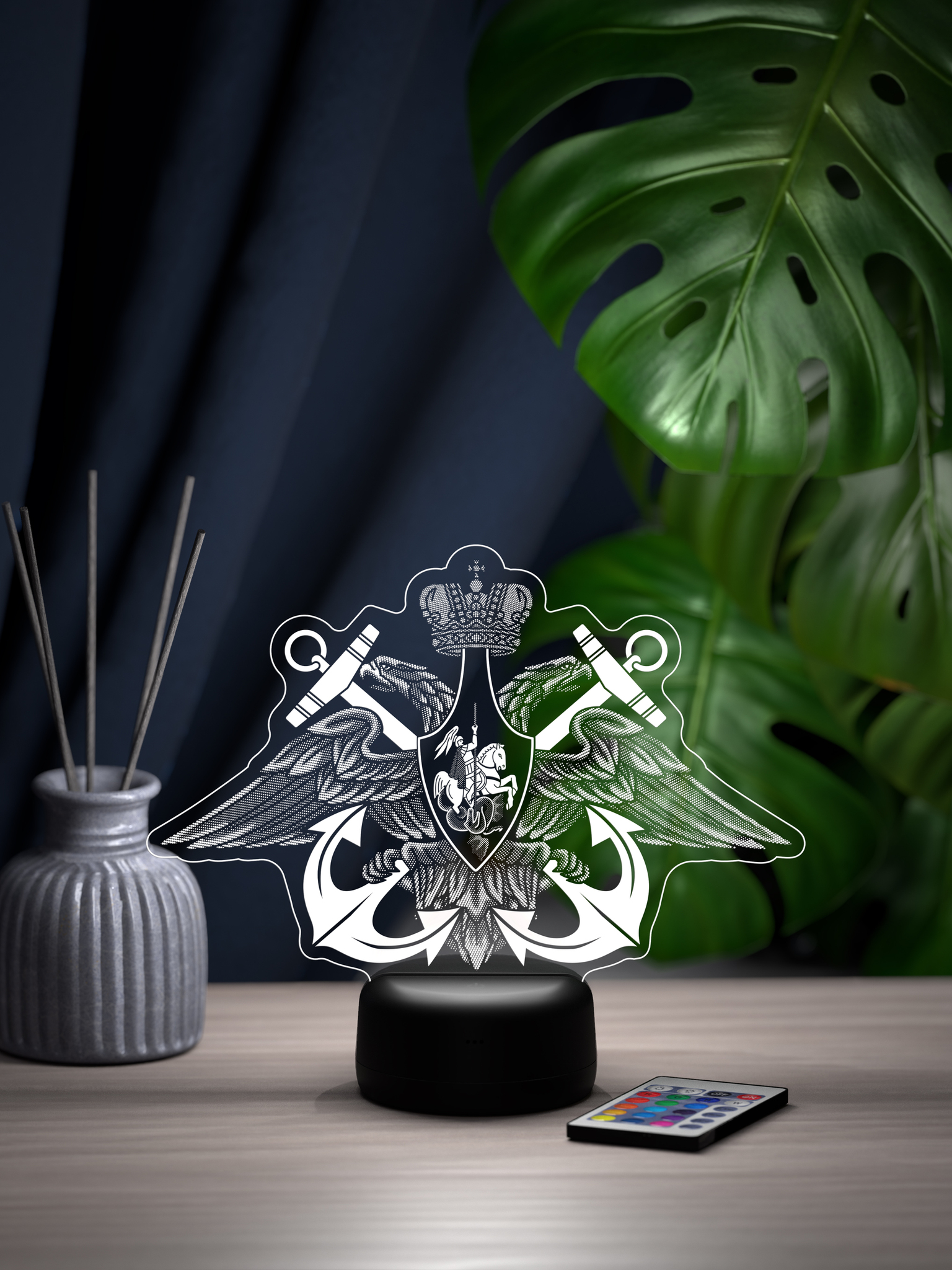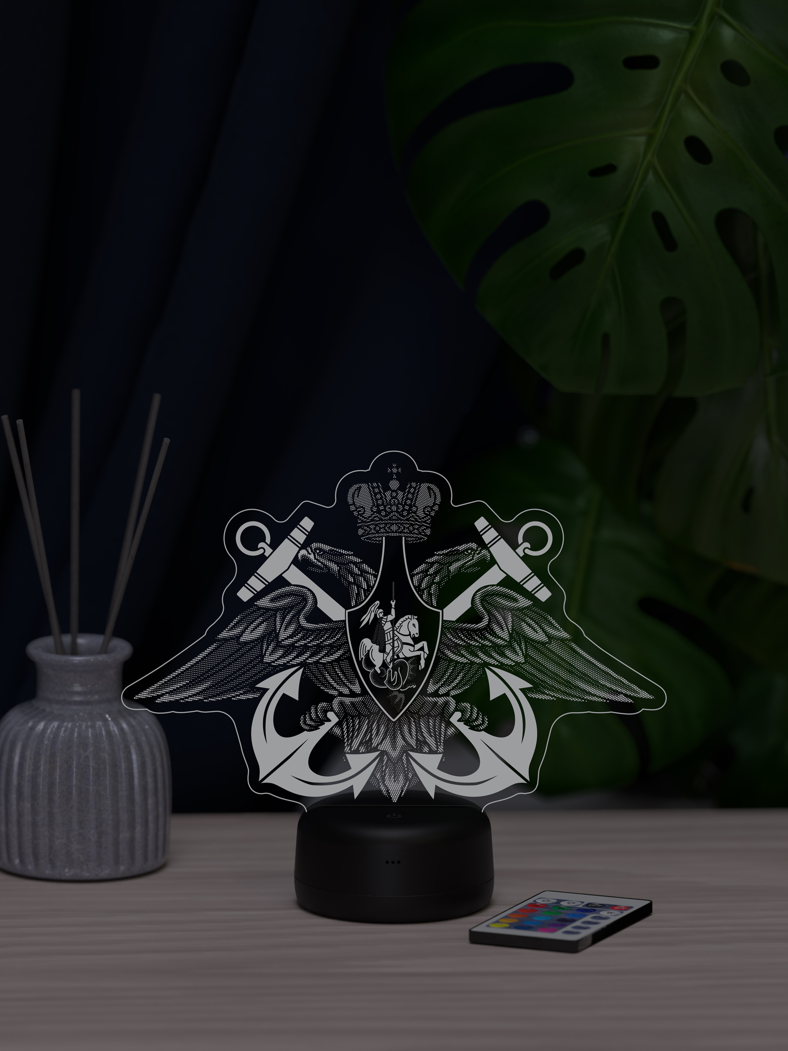 Подарите настоящий символ доблести и гордости – ночник ВМФ. Этот тематический ночник станет отличным дополнением к интерьеру, создавая атмосферу мужества и патриотизма благодаря своему выразительному свечению. 16 ярких цветов подсветки позволяют выбрать оптимальный режим, который будет гармонировать с обстановкой и подчеркивать тематику ночника. Удобный пульт дистанционного управления обеспечивает простое управление яркостью и цветом, позволяя создать нужное настроение. Ночник ВМФ – это замечательный подарок для военнослужащего Военно-Морского Флота, ветерана ВМФ, а также для всех, кто чтит морские традиции. Он станет отличным презентом на День Военно-Морского Флота, День защитника Отечества, День Победы, День рождения или по любому другому значимому поводу. Высокое качество рисунка, прочные материалы и стильная презентабельная упаковка делают этот ночник достойным подарком, который будет вызывать гордость и теплые воспоминания. Подарите ночник ВМФ и увековечьте дух морской службы, создав особую атмосферу в доме.