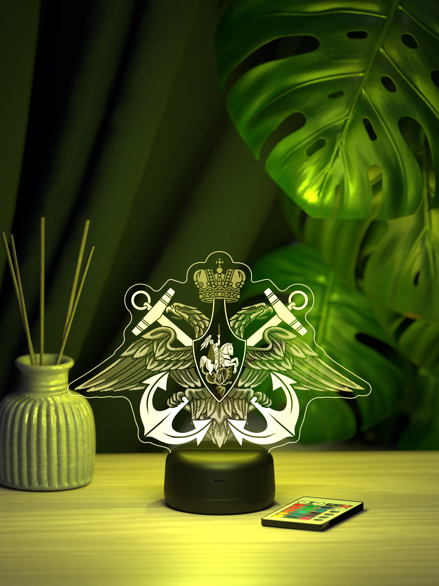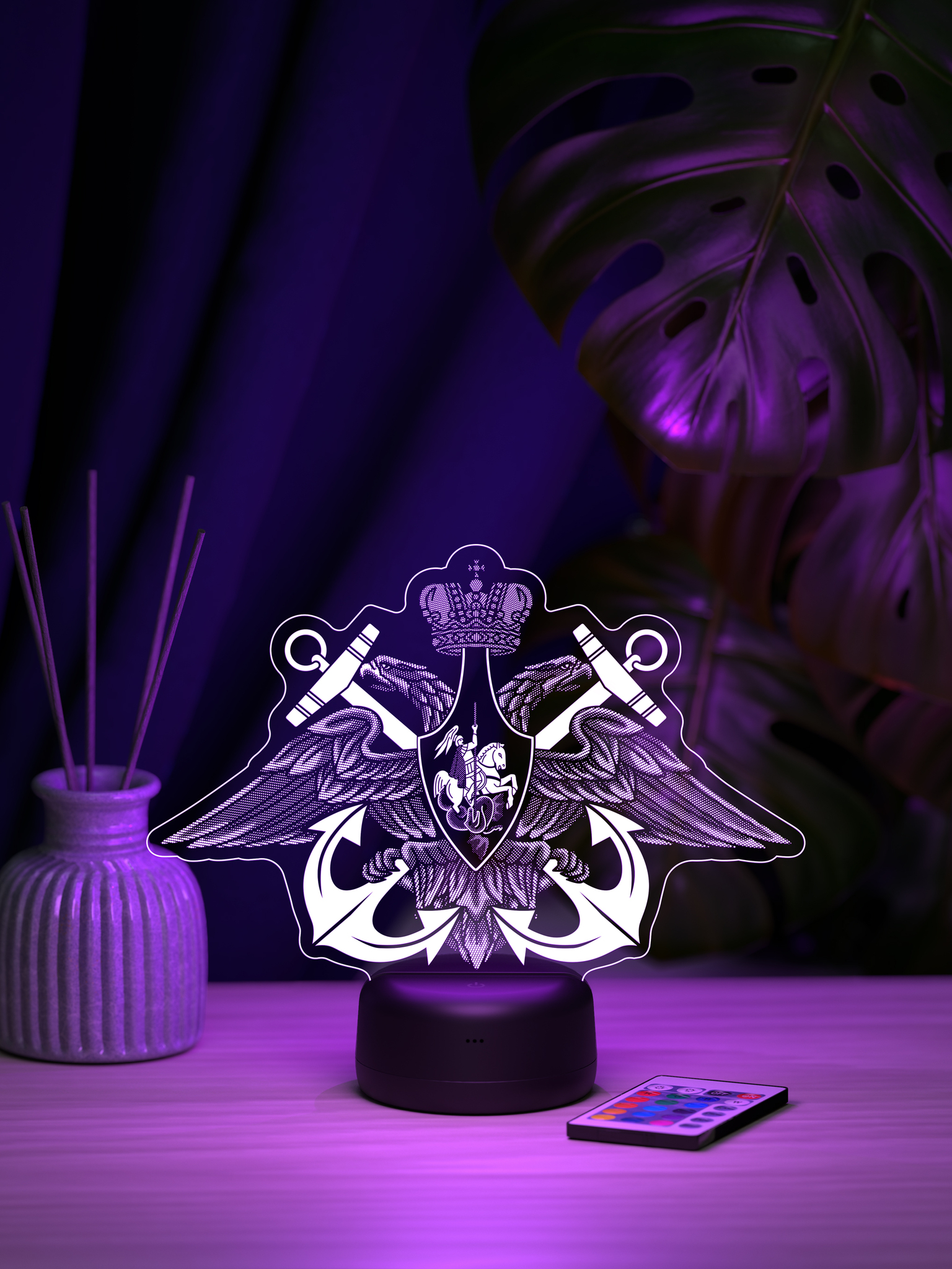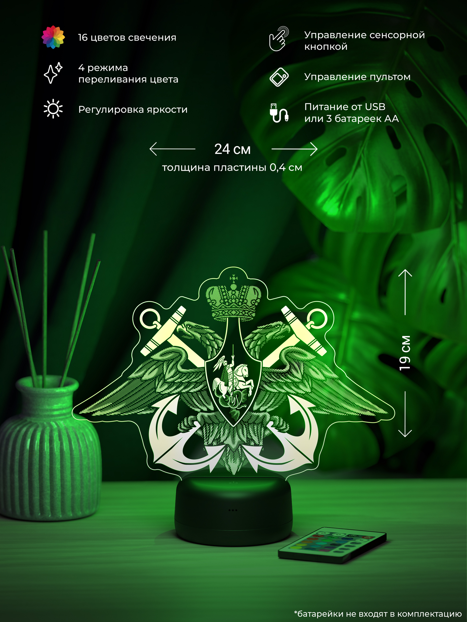 Подарите настоящий символ доблести и гордости – ночник ВМФ. Этот тематический ночник станет отличным дополнением к интерьеру, создавая атмосферу мужества и патриотизма благодаря своему выразительному свечению. 16 ярких цветов подсветки позволяют выбрать оптимальный режим, который будет гармонировать с обстановкой и подчеркивать тематику ночника. Удобный пульт дистанционного управления обеспечивает простое управление яркостью и цветом, позволяя создать нужное настроение. Ночник ВМФ – это замечательный подарок для военнослужащего Военно-Морского Флота, ветерана ВМФ, а также для всех, кто чтит морские традиции. Он станет отличным презентом на День Военно-Морского Флота, День защитника Отечества, День Победы, День рождения или по любому другому значимому поводу. Высокое качество рисунка, прочные материалы и стильная презентабельная упаковка делают этот ночник достойным подарком, который будет вызывать гордость и теплые воспоминания. Подарите ночник ВМФ и увековечьте дух морской службы, создав особую атмосферу в доме.