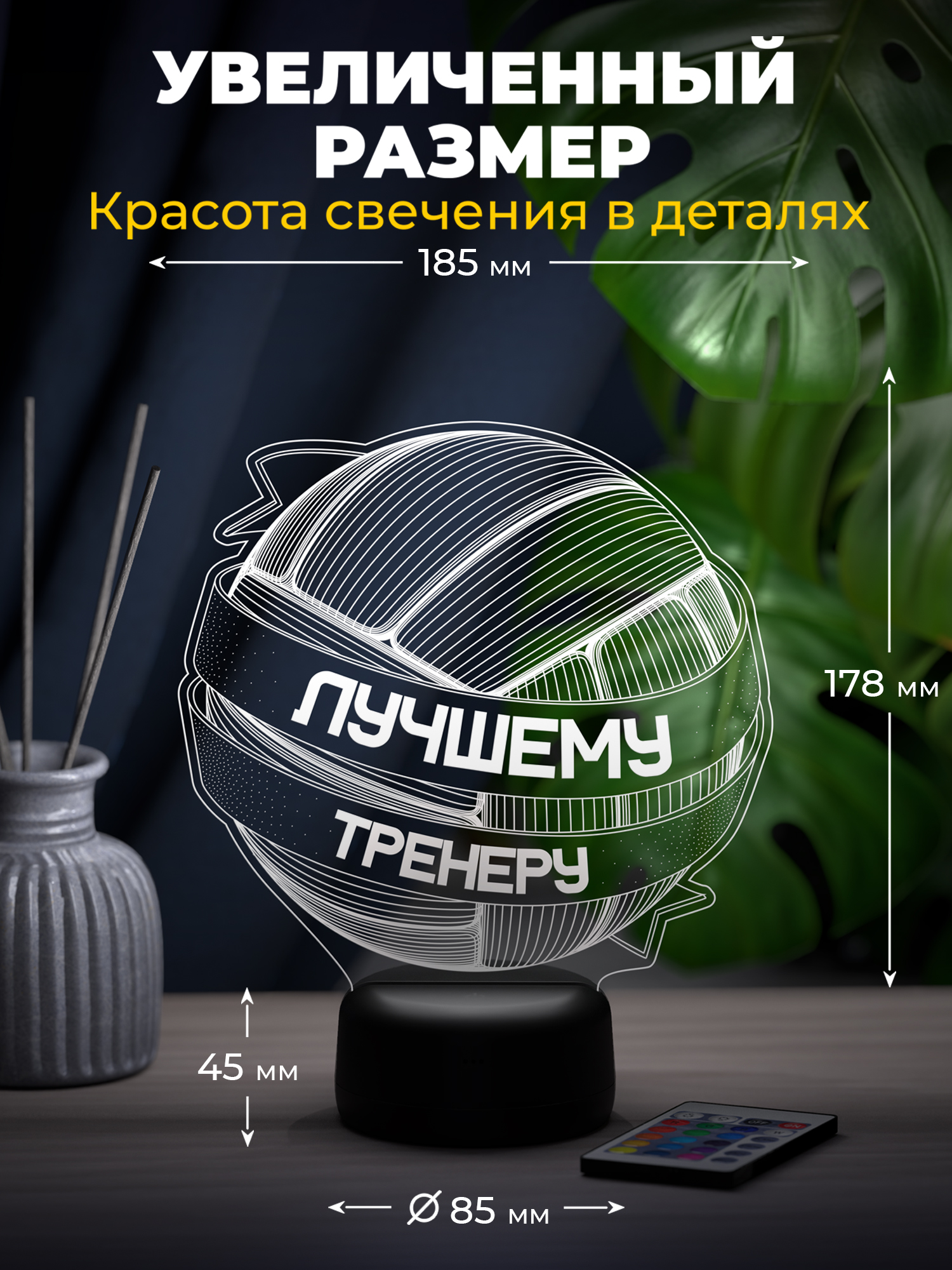 Ночник «Волейбольный мяч тренеру» - это тёплый свет благодарности за труд, поддержку и веру в команду. Изображение волейбольного мяча символизирует силу, сплочённость и стремление к победе, а мягкое свечение создаёт в интерьере спокойную и вдохновляющую атмосферу. Такой ночник становится не просто элементом декора, а напоминанием о важных матчах, тренировках и эмоциях, которые остаются в памяти надолго.