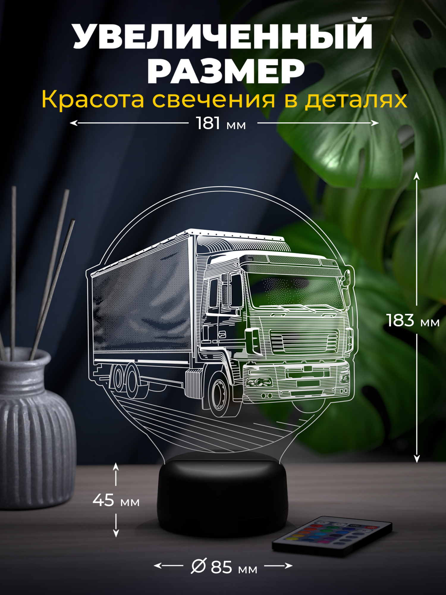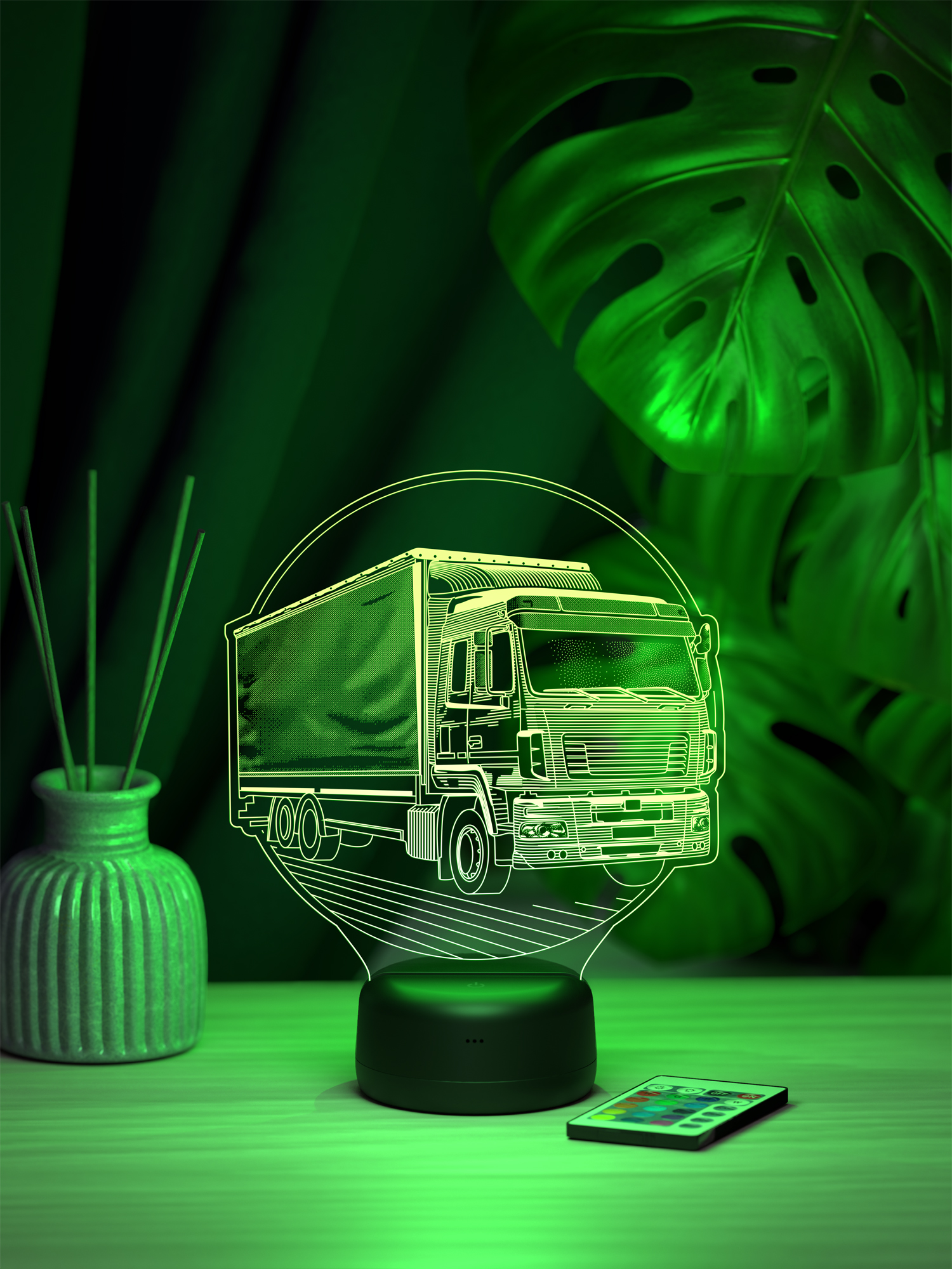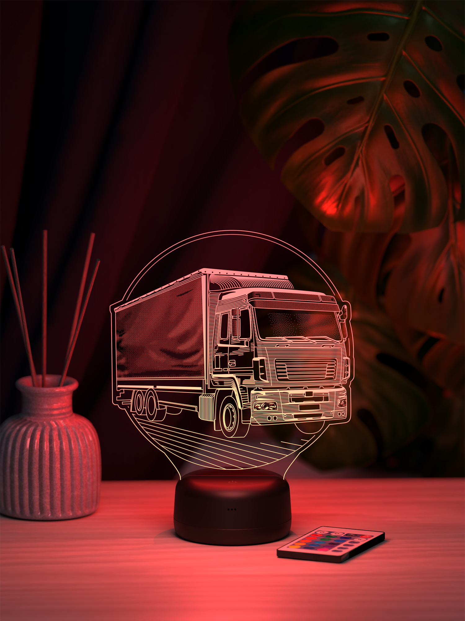 Ночник поддерживает 16 цветов свечения, регулировку яркости и удобное переключение режимов с помощью пульта дистанционного управления, позволяя легко менять настроение освещения. Высокое качество рисунка, качественные материалы и презентабельная упаковка подчёркивают, что это готовый подарок. Такой подарок подойдёт водителю-дальнобойщику, логисту, механику, любителю техники или человеку, чья жизнь связана с дорогой, и будет уместен на день рождения, профессиональный праздник, окончание рейса или как знак уважения и поддержки, добавляя в интерьер атмосферу движения и уверенности.