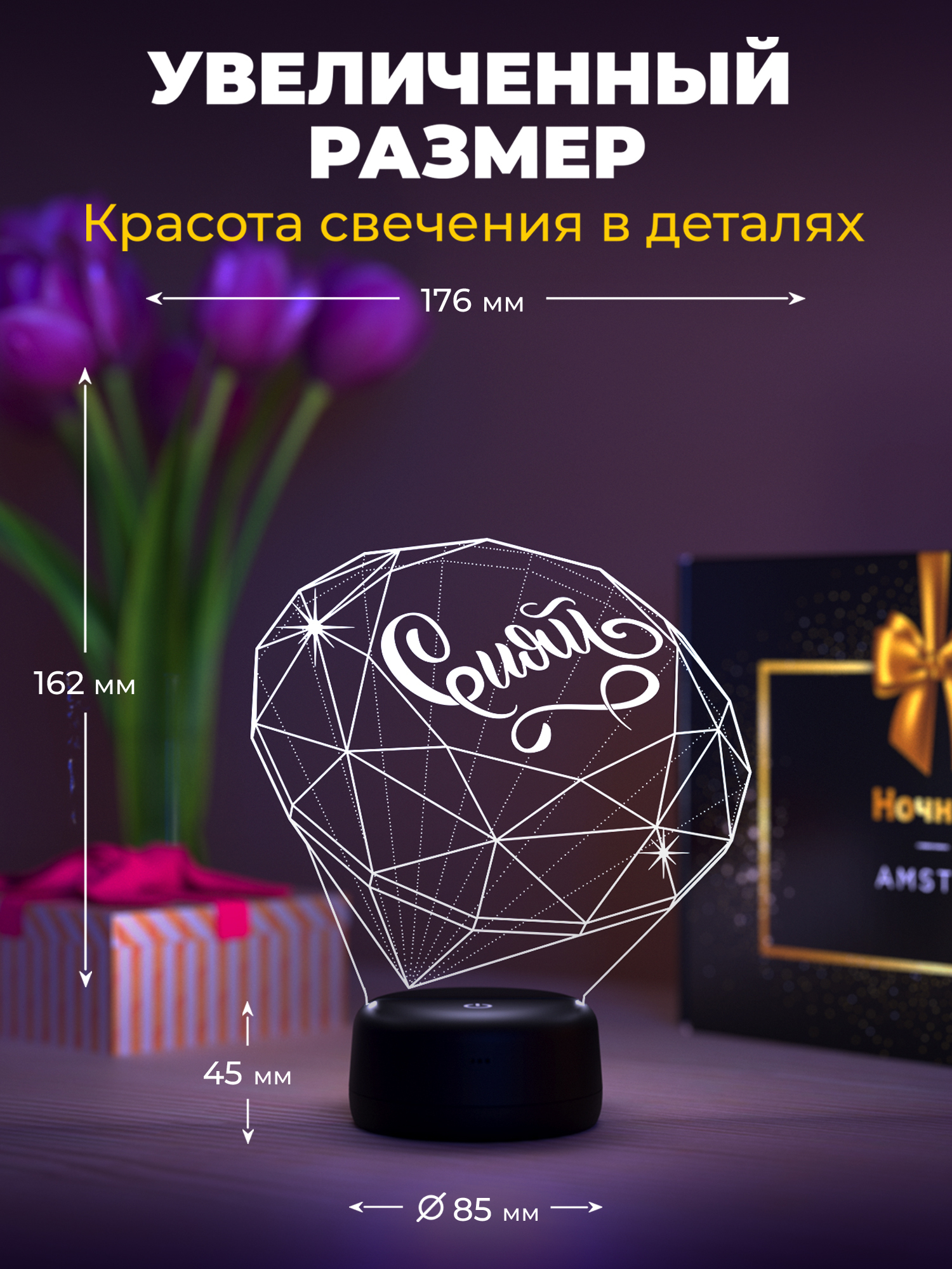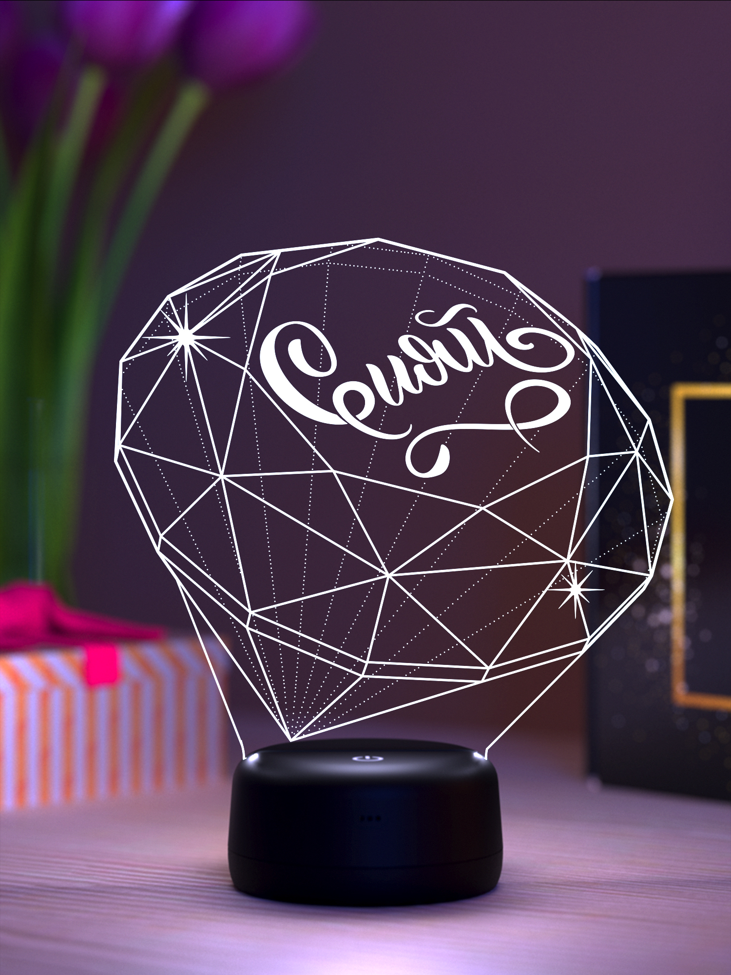 Подарите сияние и блеск с ночником Бриллиант и вдохновляющей надписью "Сияй". Этот изысканный подарок наполнит комнату завораживающим свечением, создавая атмосферу роскоши и праздника. 16 переливающихся цветов подсветки помогут подобрать идеальное освещение, которое гармонично дополнит интерьер и подчеркнет индивидуальность. Удобный пульт дистанционного управления позволит легко регулировать яркость и переключать цвета, создавая нужное настроение. Ночник Бриллиант станет восхитительным подарком для любимой девушки, жены, дочери, мамы, сестры, подруги или коллеги на День рождения, 8 марта, Новый год, выпускной, повышение по службе или просто так, чтобы выразить восхищение и поддержку. Символика бриллианта олицетворяет успех, красоту и внутренний свет, делая этот подарок особенно ценным и вдохновляющим. Высокое качество рисунка, использование качественных материалов и презентабельная упаковка подчеркивают премиальность и изысканность подарка. Подарите ночник Бриллиант и позвольте близкому человеку сиять еще ярче.