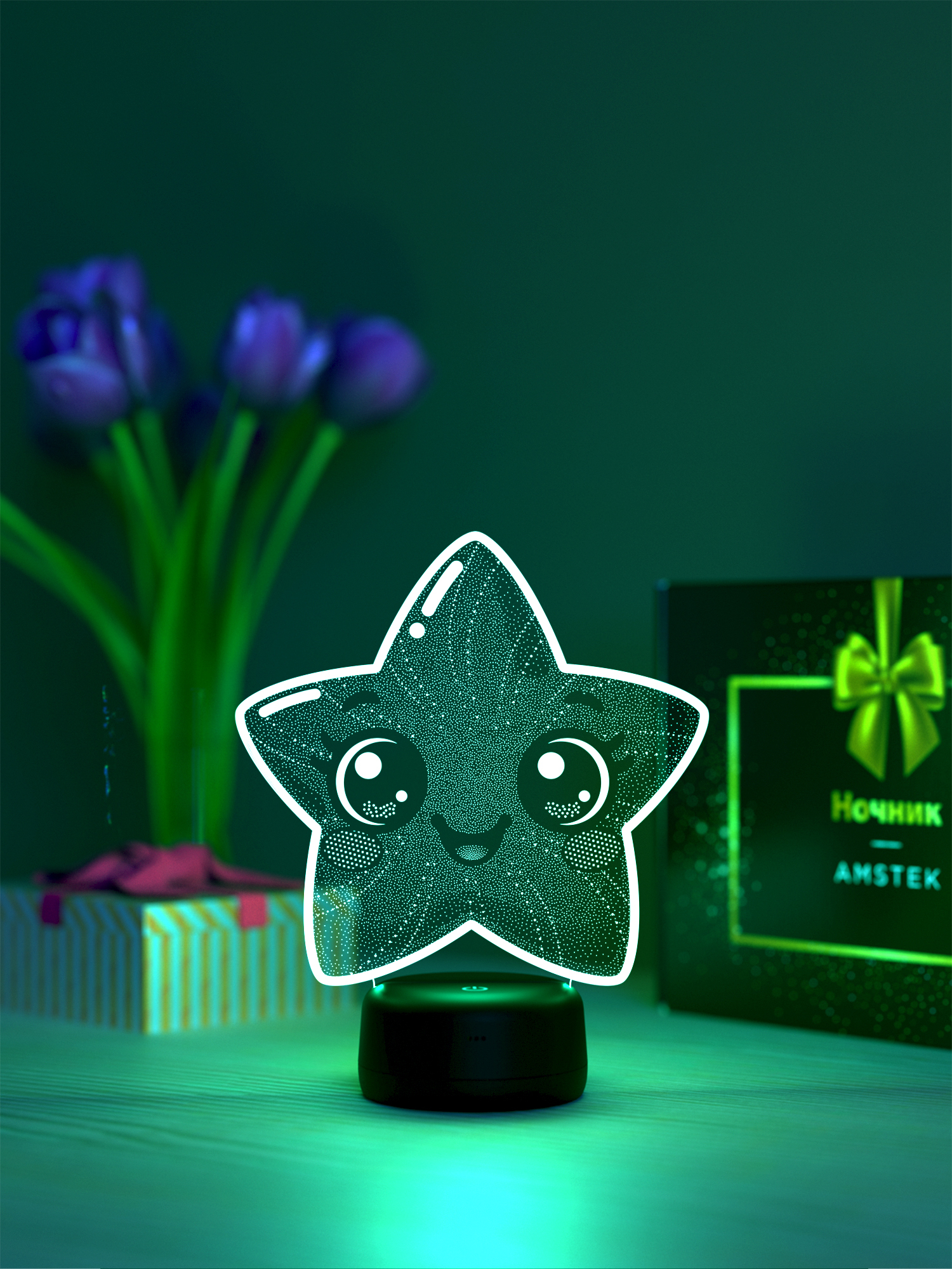Главное отличие Амстек — самое высокое качество рисунка! Прорисовка любого изображения на ночнике порадует всех перфекционистов, никаких смазанных линий!  Кроме эстетичности, ночник также выполняет практическую функцию: он освещает помещение на расстоянии до 2 метров, что особенно полезно для детей, которые боятся темноты. Заказав светильник Amstek, вы получаете: