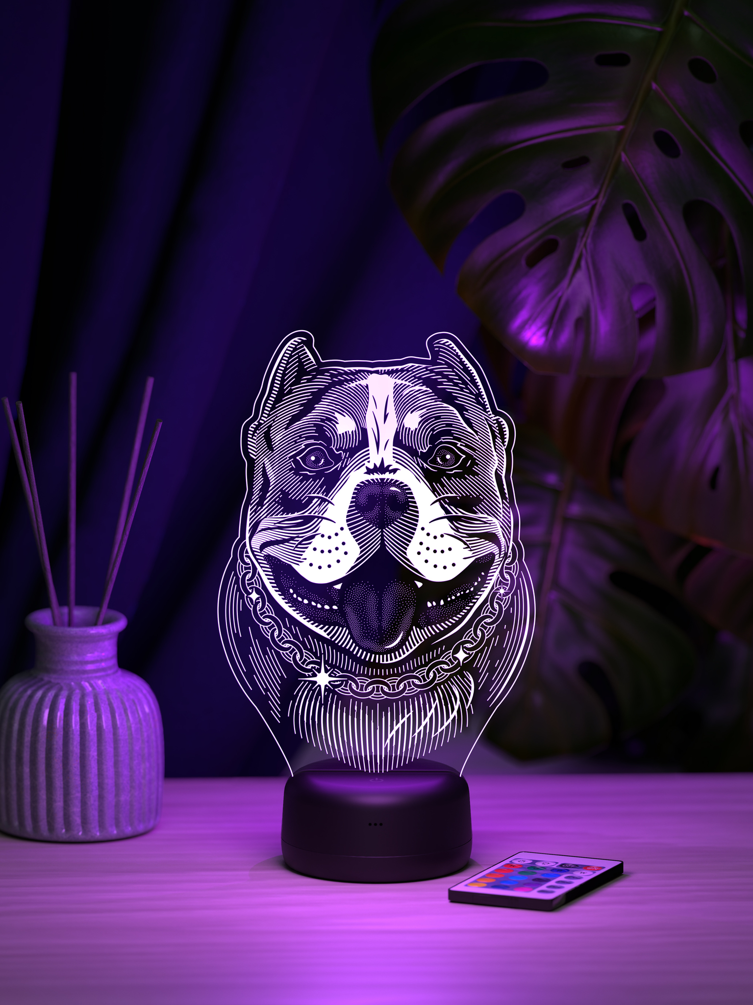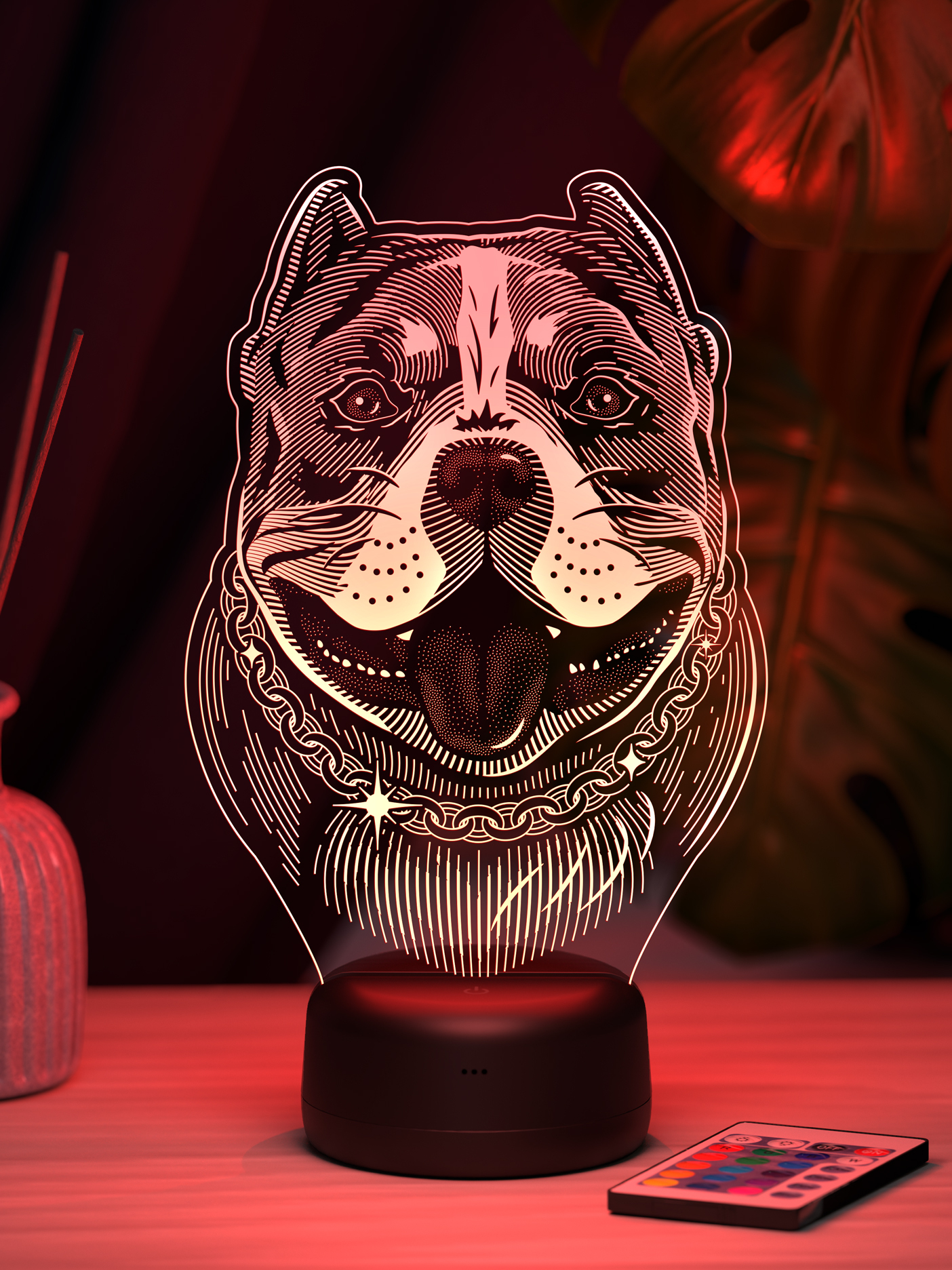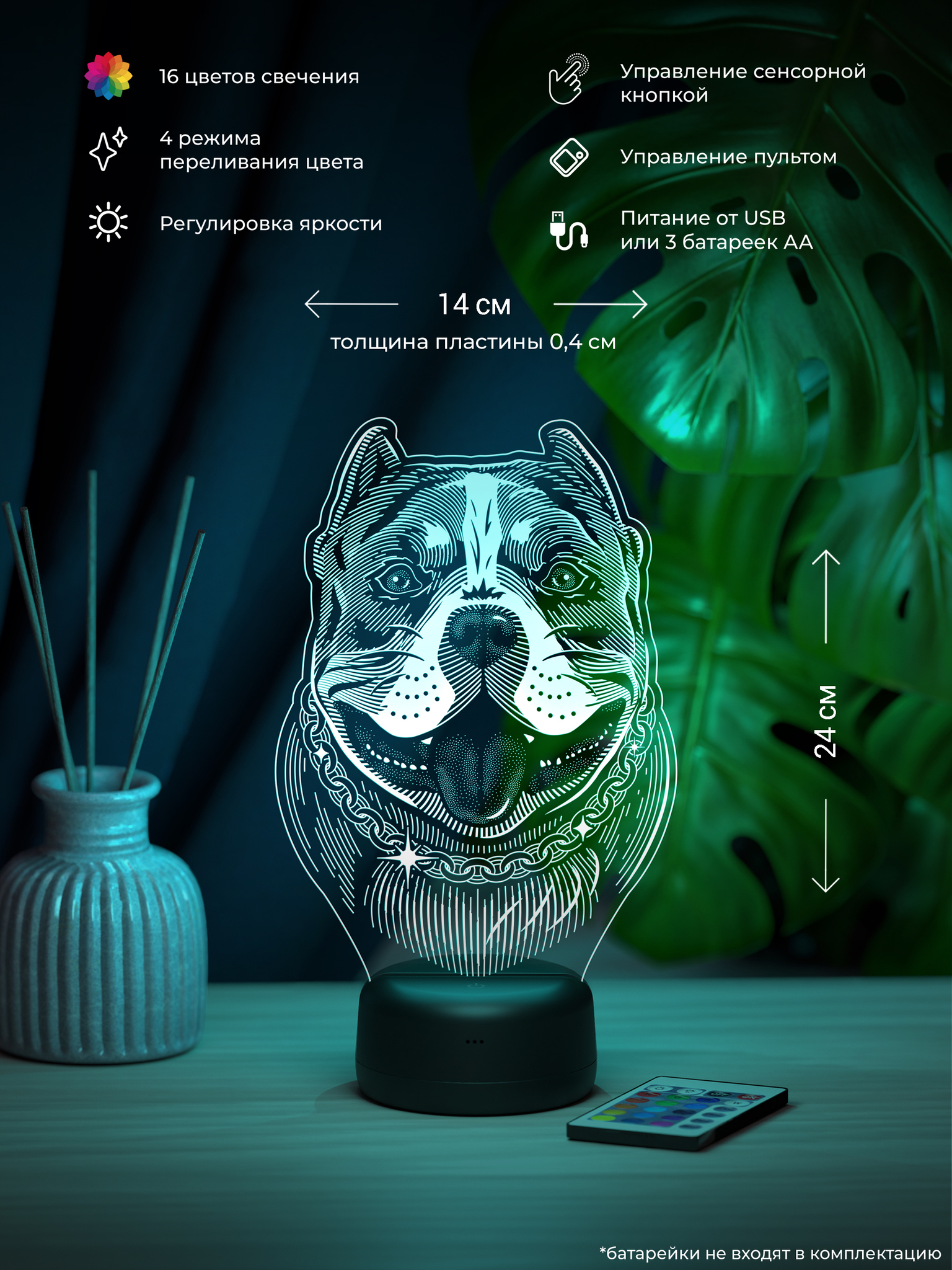 Подарите любителю собак стильный и современный подарок – ночник Американский булли. Этот ночник станет ярким акцентом в интерьере, наполнив комнату мягким, атмосферным свечением, которое создаст уютную и расслабляющую обстановку. 16 завораживающих цветов подсветки позволят вам выбрать идеальное освещение, которое будет гармонировать с вашим стилем и настроением. Удобный пульт дистанционного управления обеспечивает легкое переключение цветов и регулировку яркости, делая использование ночника максимально комфортным. Ночник Американский булли – это прекрасный подарок для владельца этой породы, для поклонника собак или просто для человека, который ценит стильные и оригинальные аксессуары для дома. Он идеально подойдет в качестве подарка на День рождения, Новый год, новоселье или просто как знак внимания и заботы. Высокое качество рисунка, использование премиальных материалов и презентабельная упаковка подчеркивают изысканность и ценность этого подарка. Подарите ночник Американский булли и создайте в доме особенную атмосферу, полную стиля и тепла, которая будет напоминать о вашем внимании и заботе.