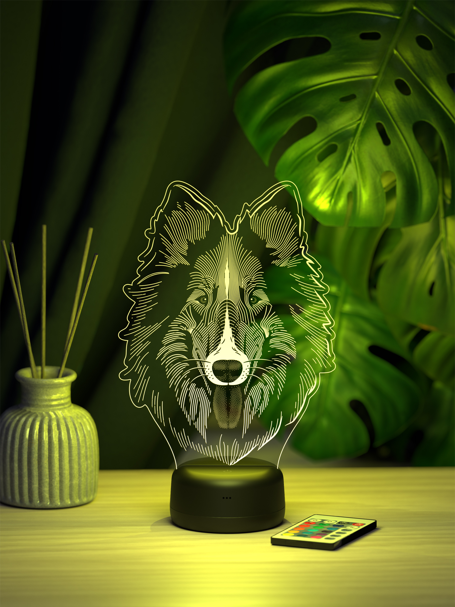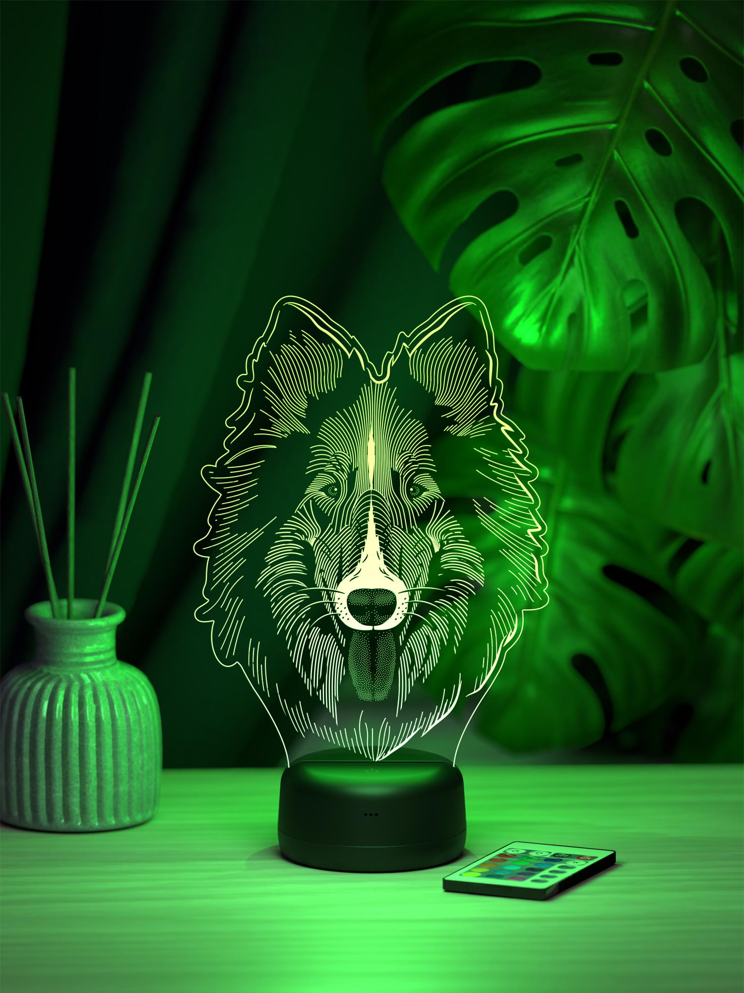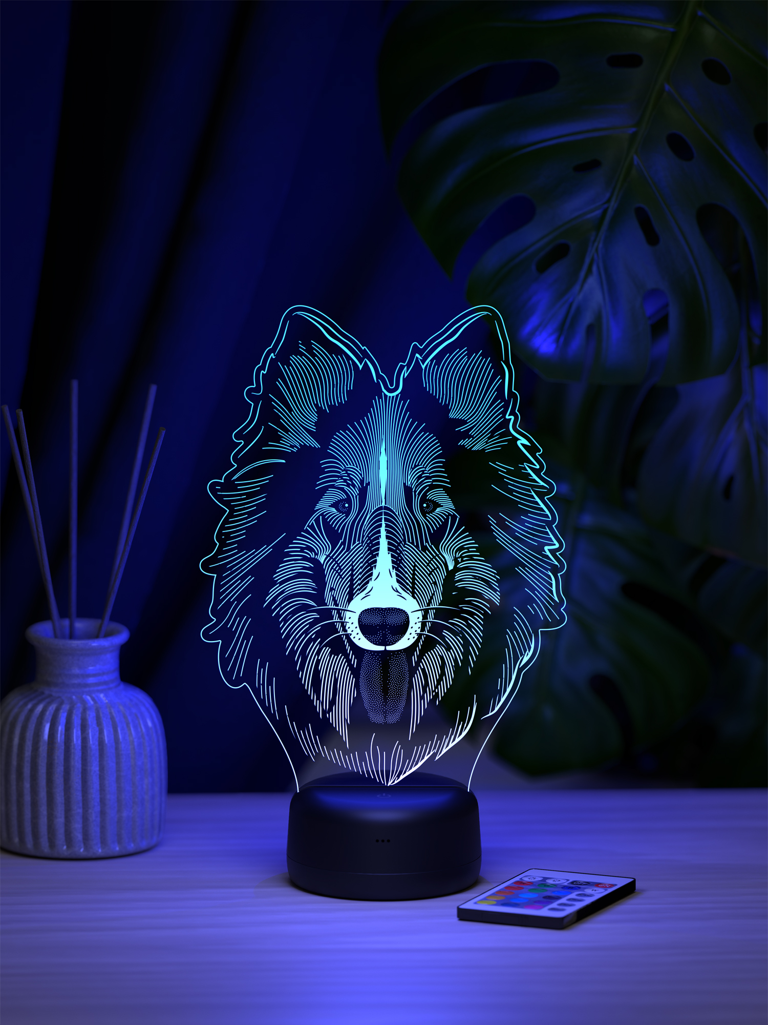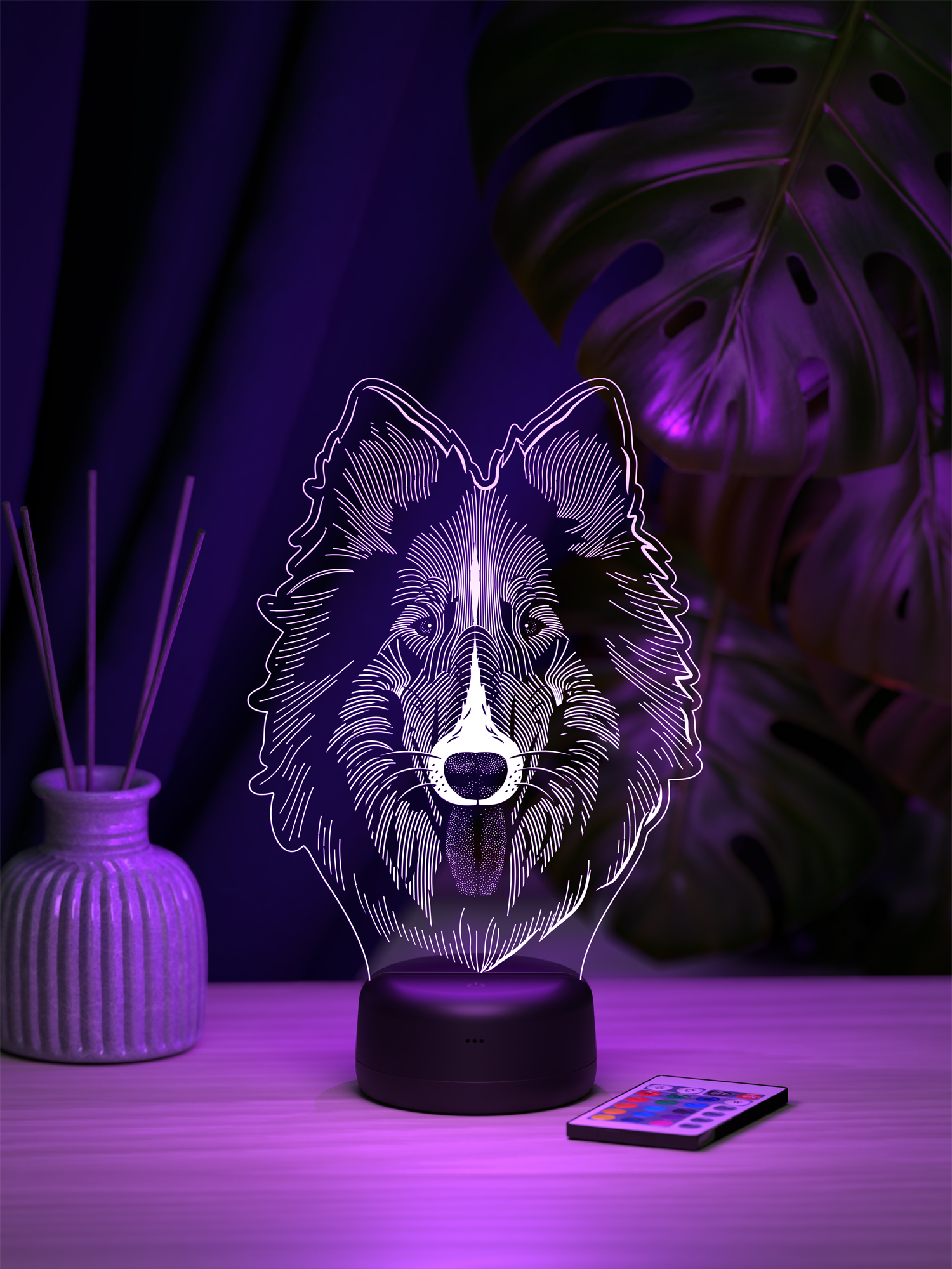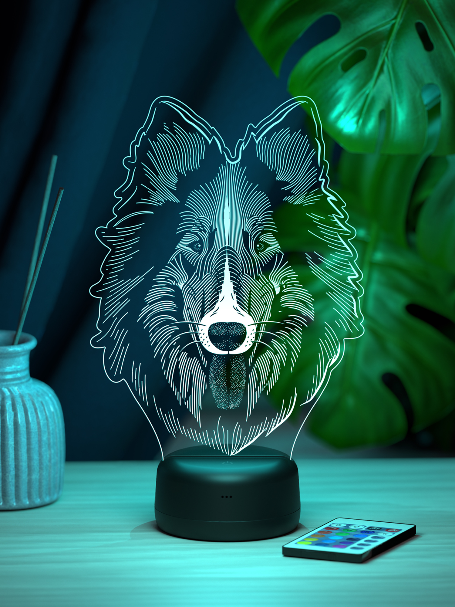 Ночник Колли - это стильный элемент декора, который наполнит пространство мягким свечением и создаст уютную атмосферу в любом интерьере.  Благодаря 16 оттенкам свечения можно выбрать подходящее освещение под настроение или время суток, а с помощью пульта дистанционного управления легко регулировать яркость и переключать цвета, не вставая с места.  Высокое качество рисунка и тщательно подобранные материалы делают этот ночник не только функциональным, но и эстетически привлекательным акцентом в комнате.  Приятное свечение добавляет тепла и уюта, превращая привычное пространство в место, где хочется расслабиться и насладиться гармонией.  Такой ночник станет прекрасным подарком для друзей, родных или коллег, ведь он универсален и украсит любой интерьер.  Его можно подарить на день рождения, новоселье, Новый год или просто в знак внимания, чтобы порадовать близкого человека стильной деталью, создающей особую атмосферу.  Презентабельная упаковка делает ночник готовым решением для подарка, экономя ваше время и подчеркивая заботу о тех, кому вы его вручаете.  Этот ночник не просто освещает - он наполняет пространство теплом, создавая настроение уюта и гармонии.